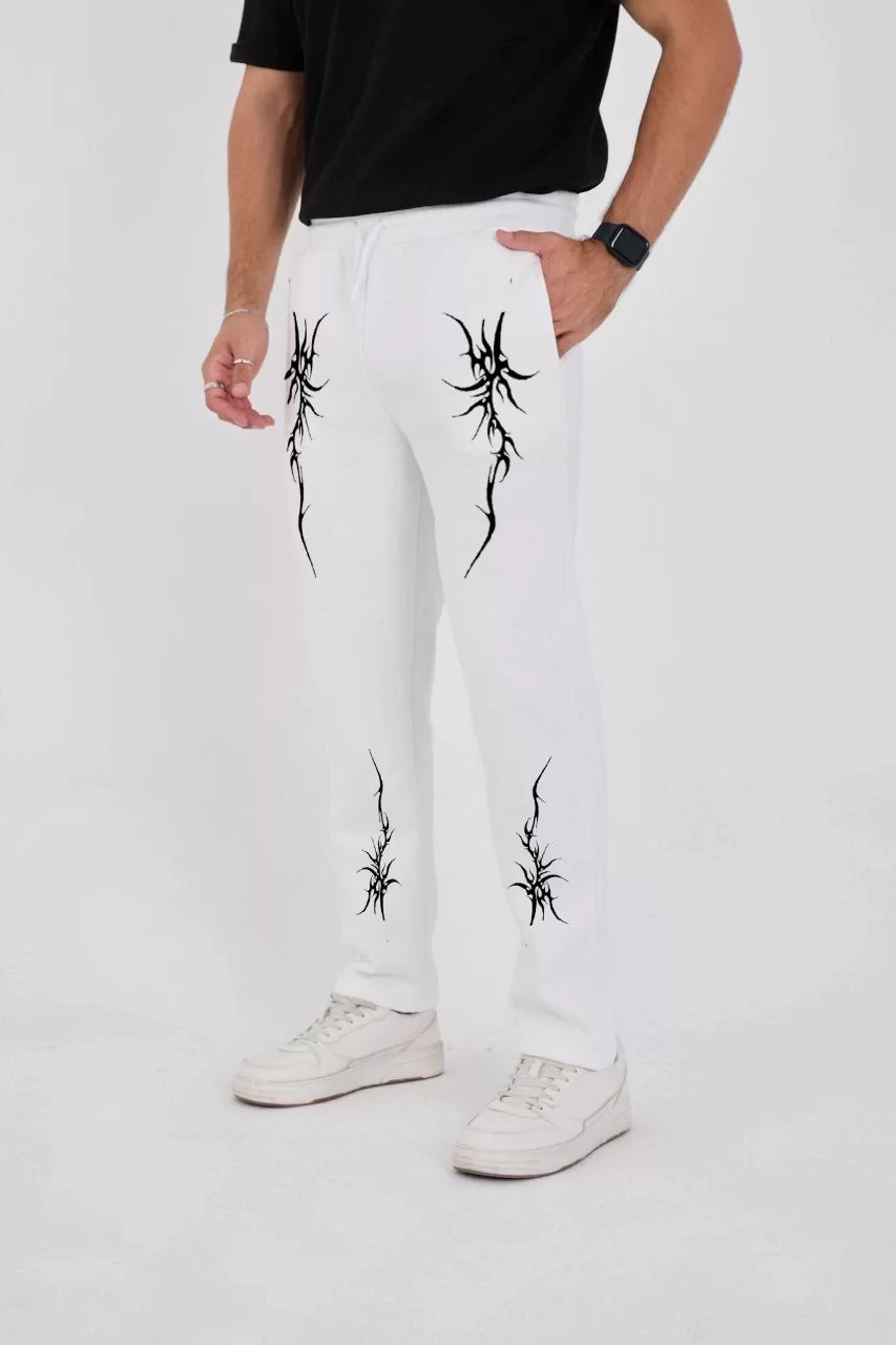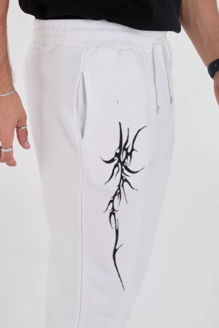 Boru Paça Üç İplik Baskılı Eşofman Pantolon - Beyaz