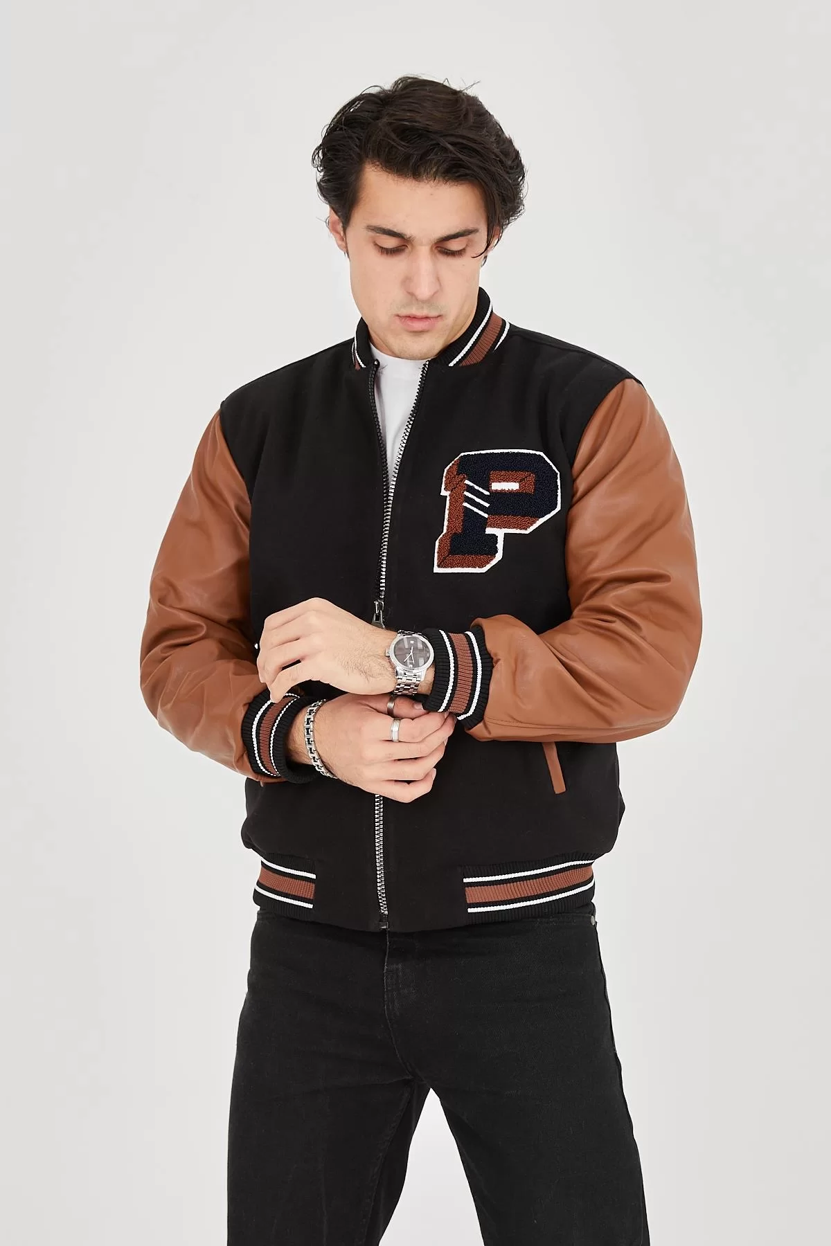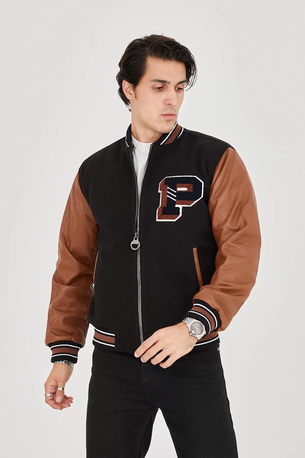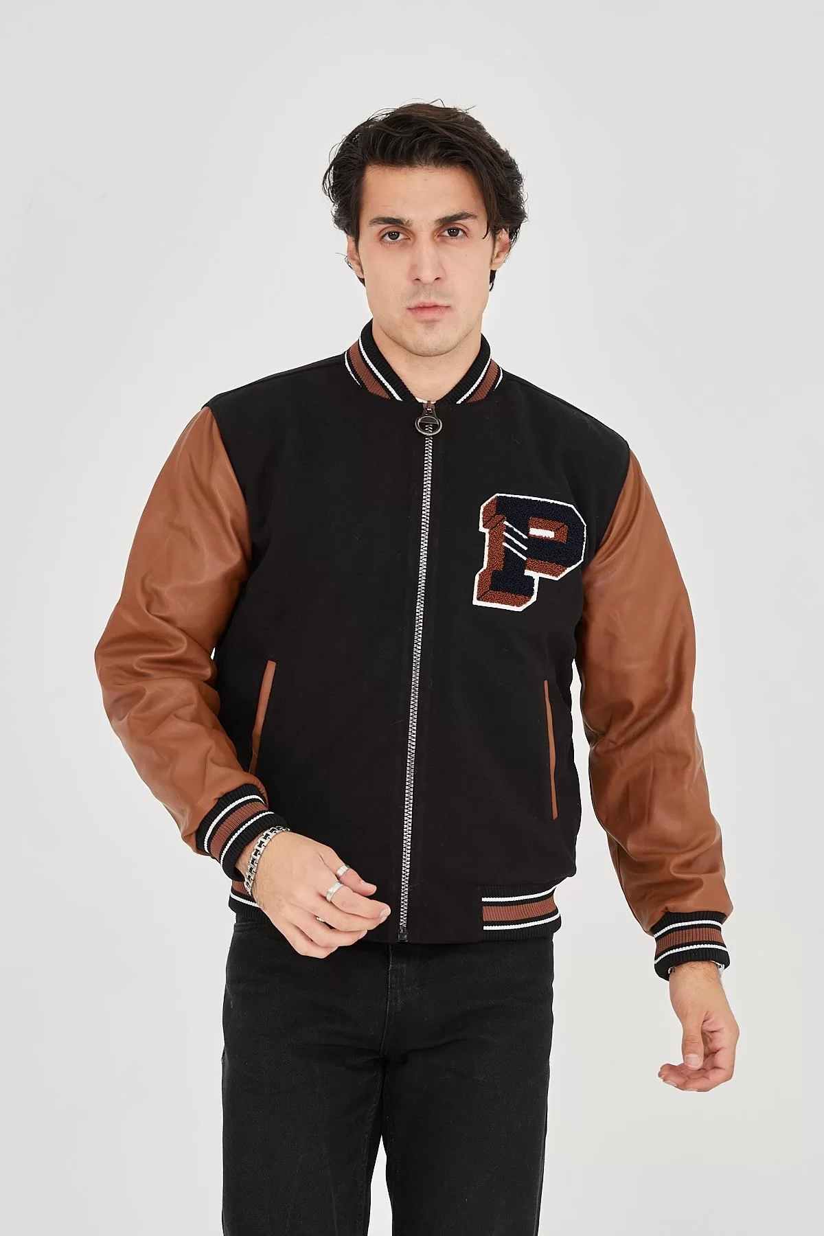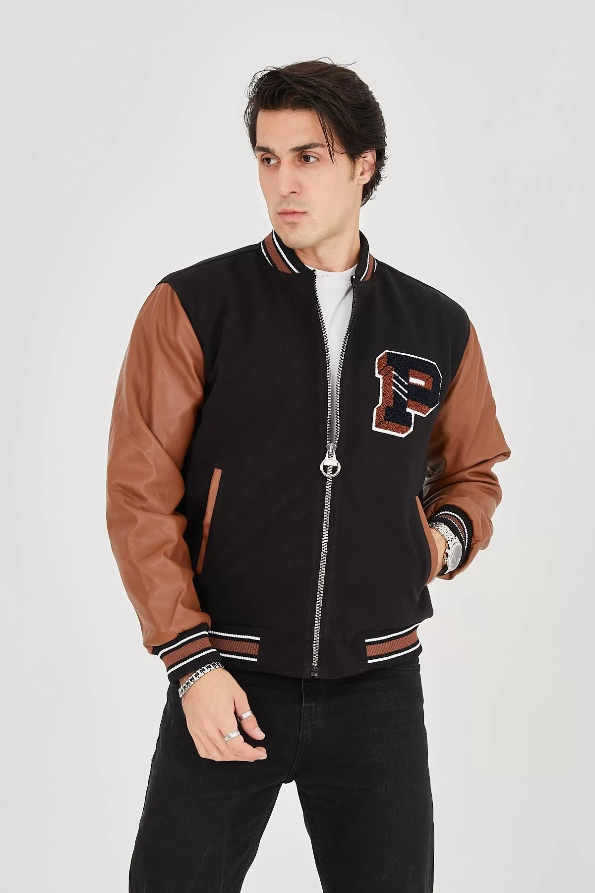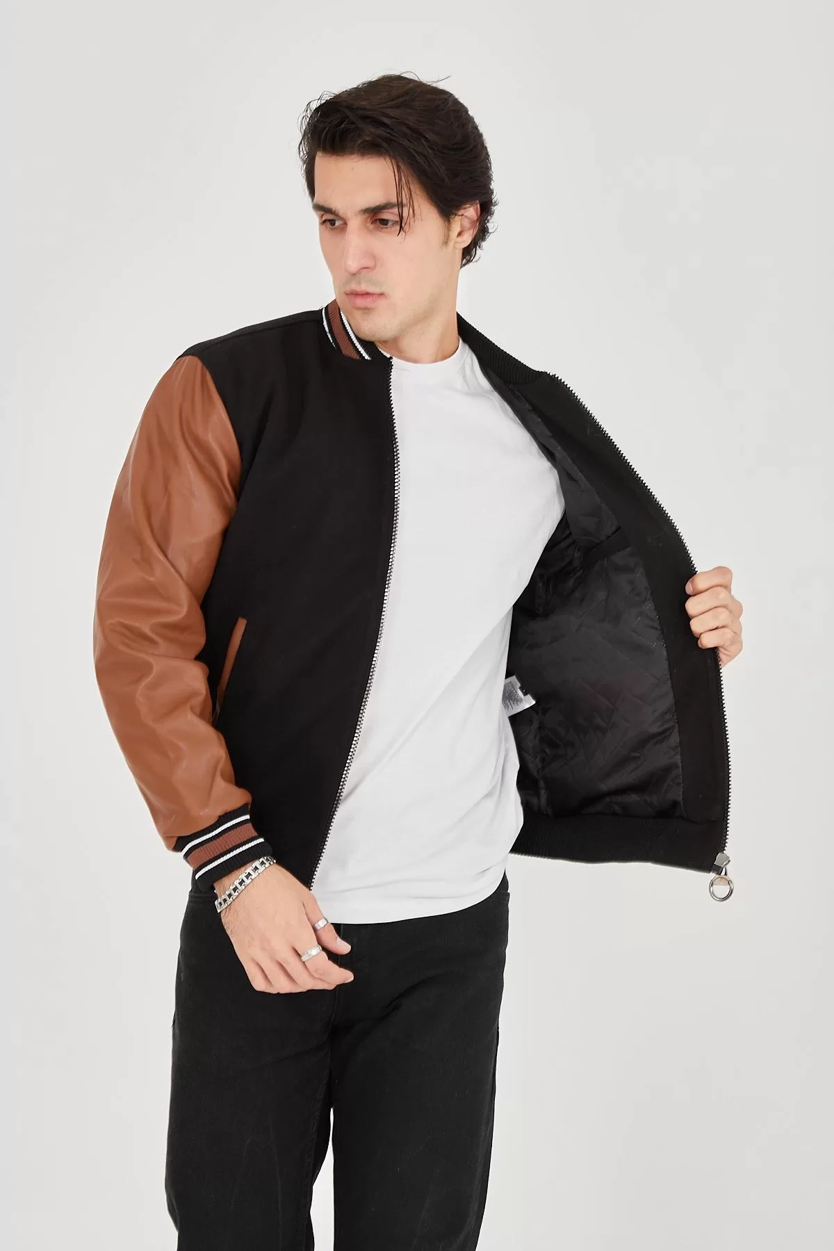 Erkek İçten Elyaf ve Astarlı Kolları Suni Deri Ceket - Kahverengi