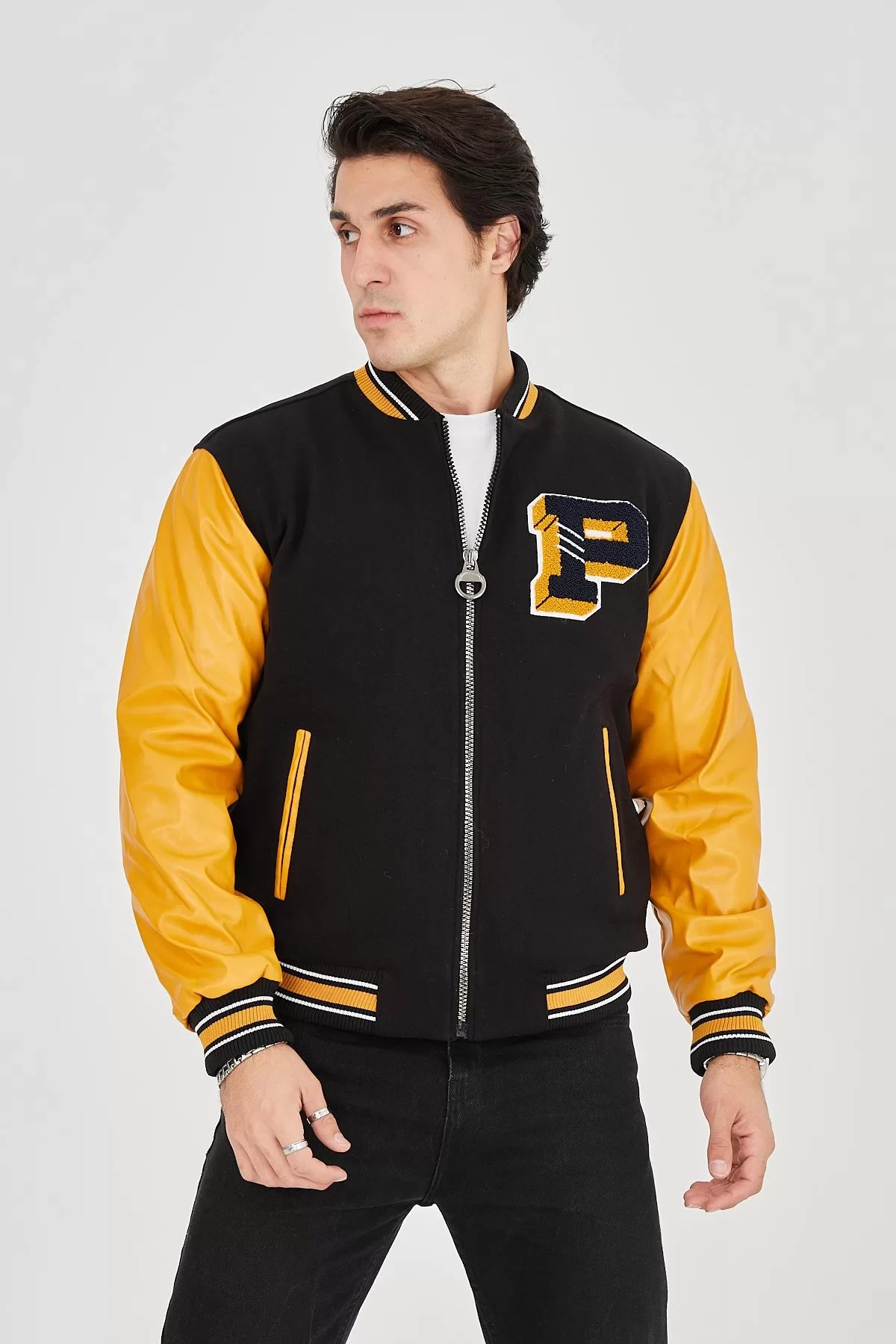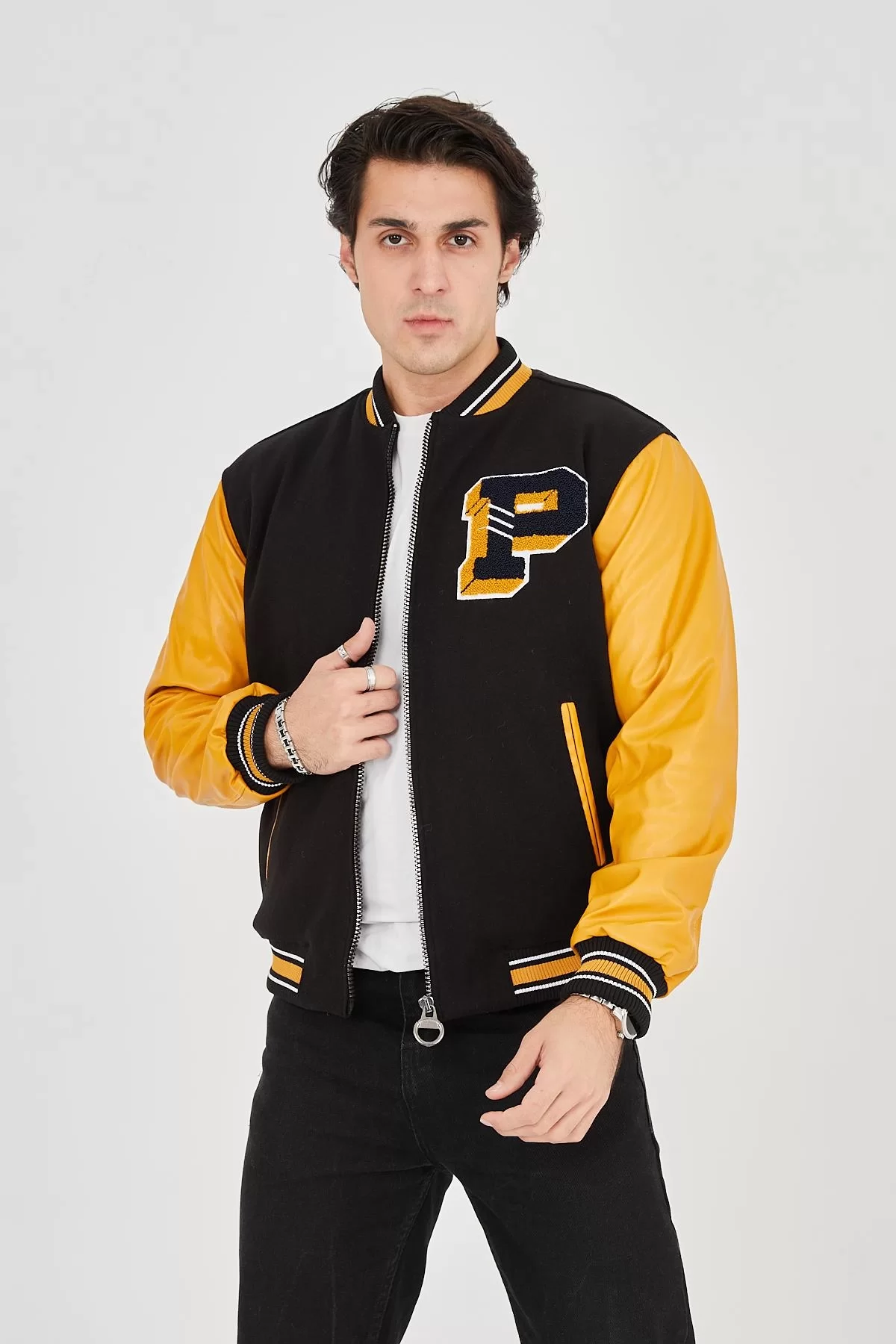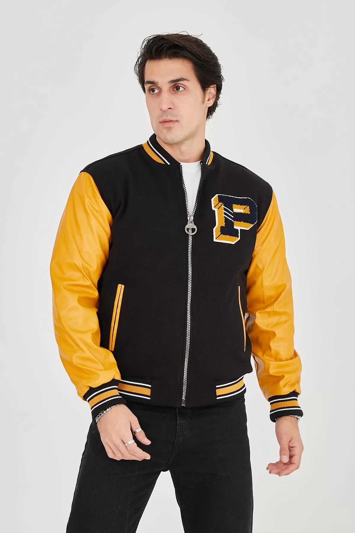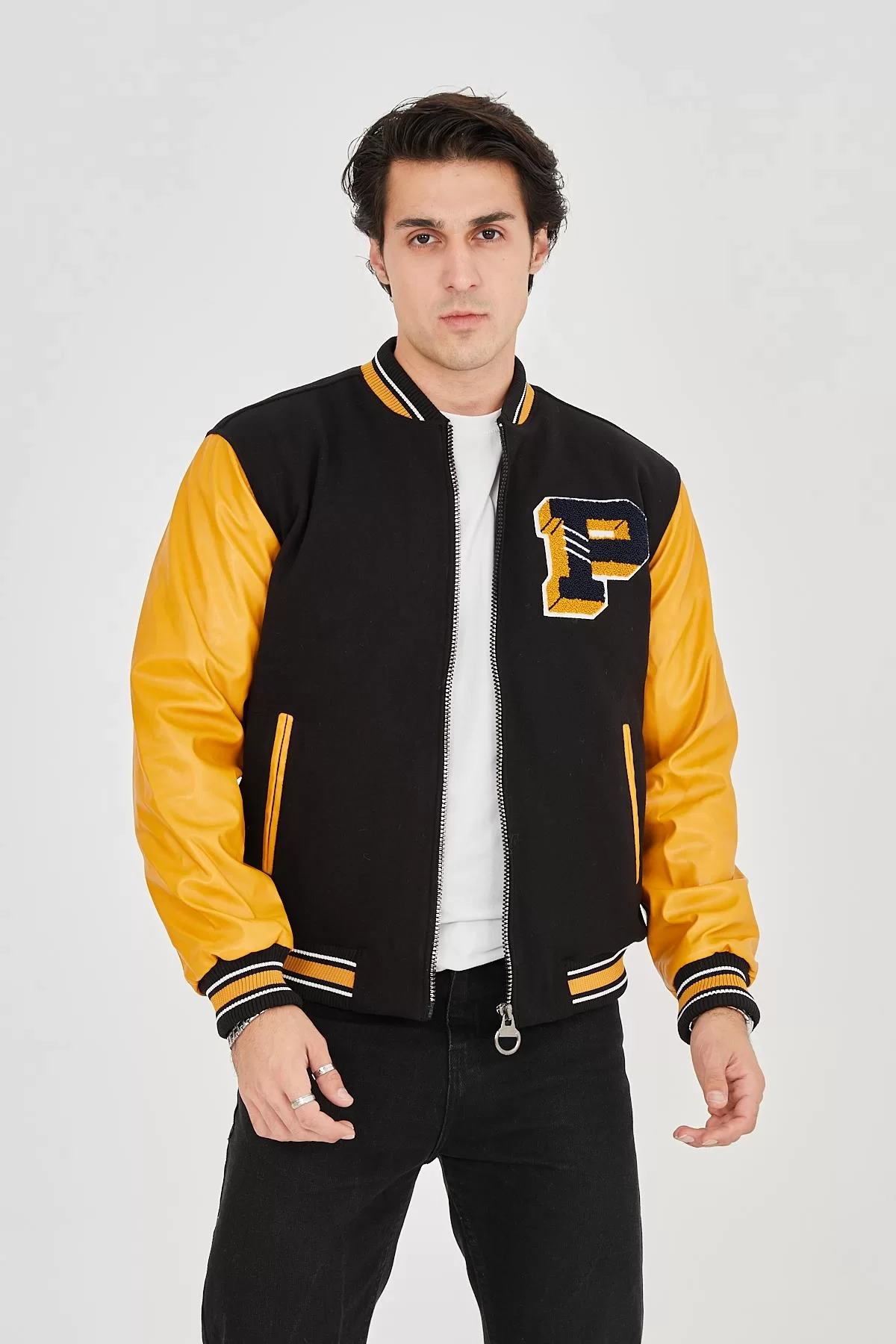 Erkek İçten Elyaf ve Astarlı Kolları Suni Deri Ceket - Sarı