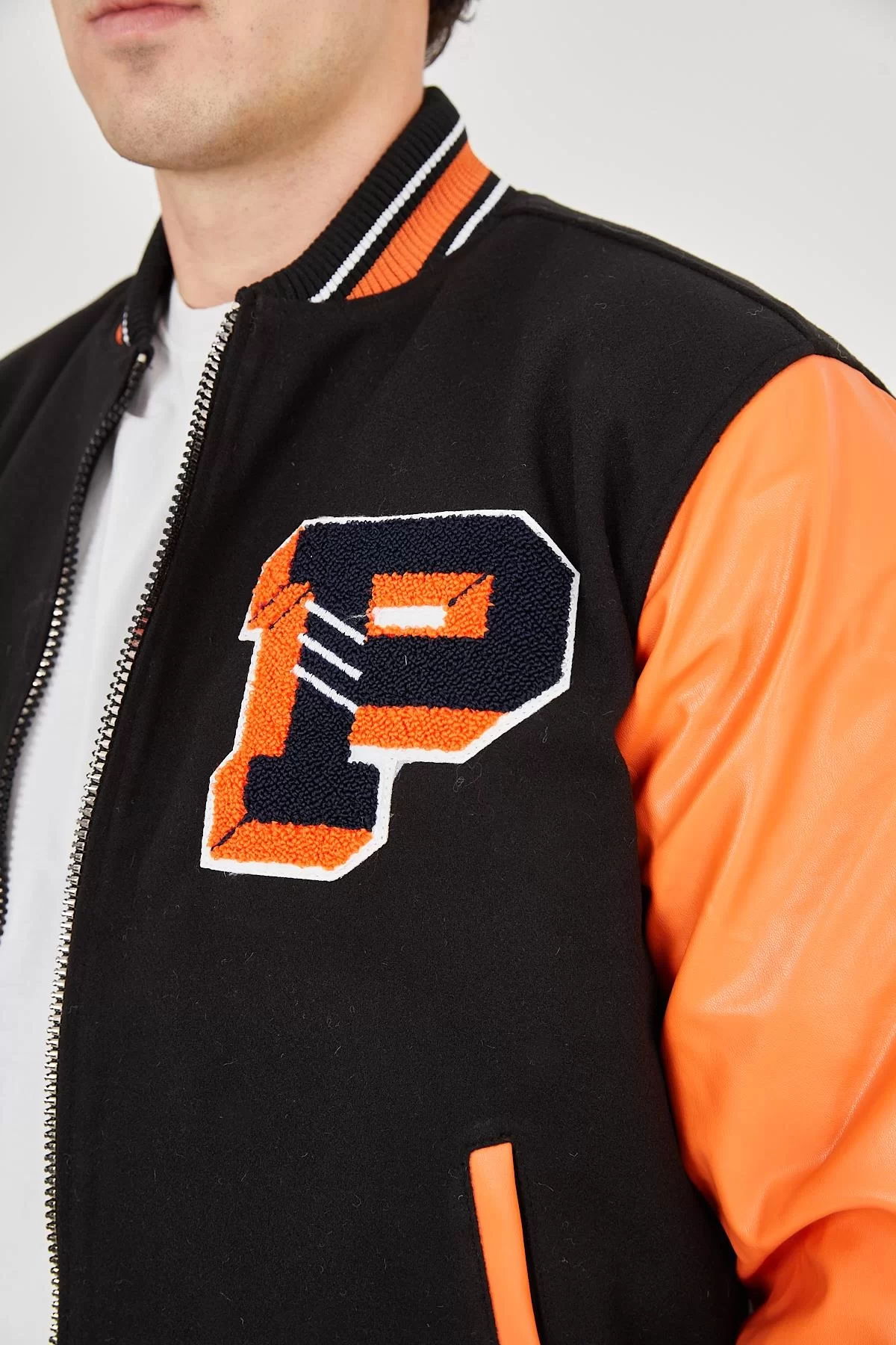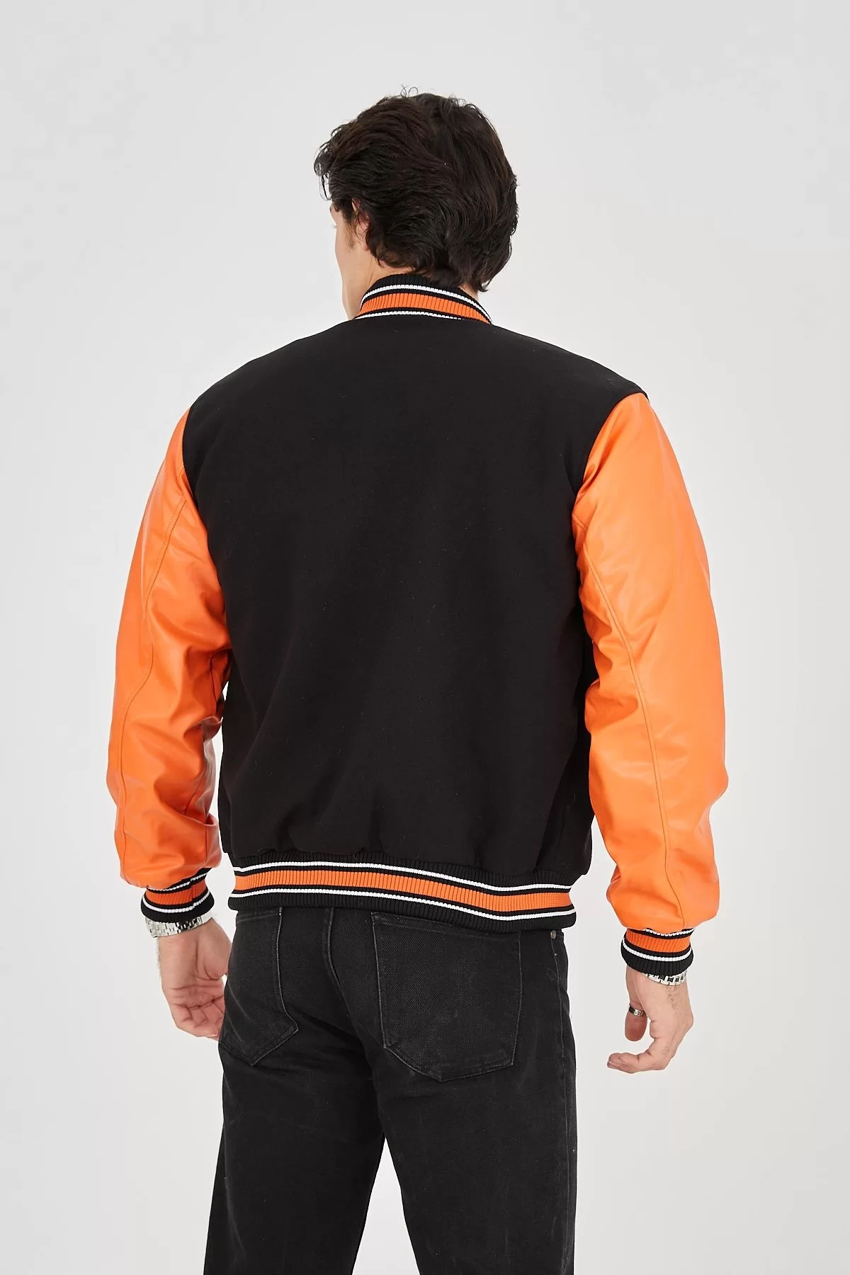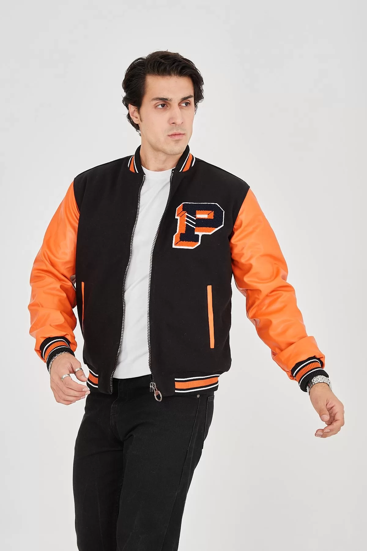 Erkek İçten Elyaf ve Astarlı Kolları Suni Deri Ceket - Turuncu