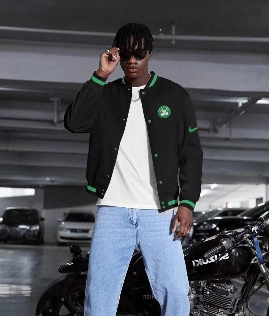 Erkek Nakışlı Dijital Sırt Baskılı Üç İplik Oversize Kolej Ceket - Siyah