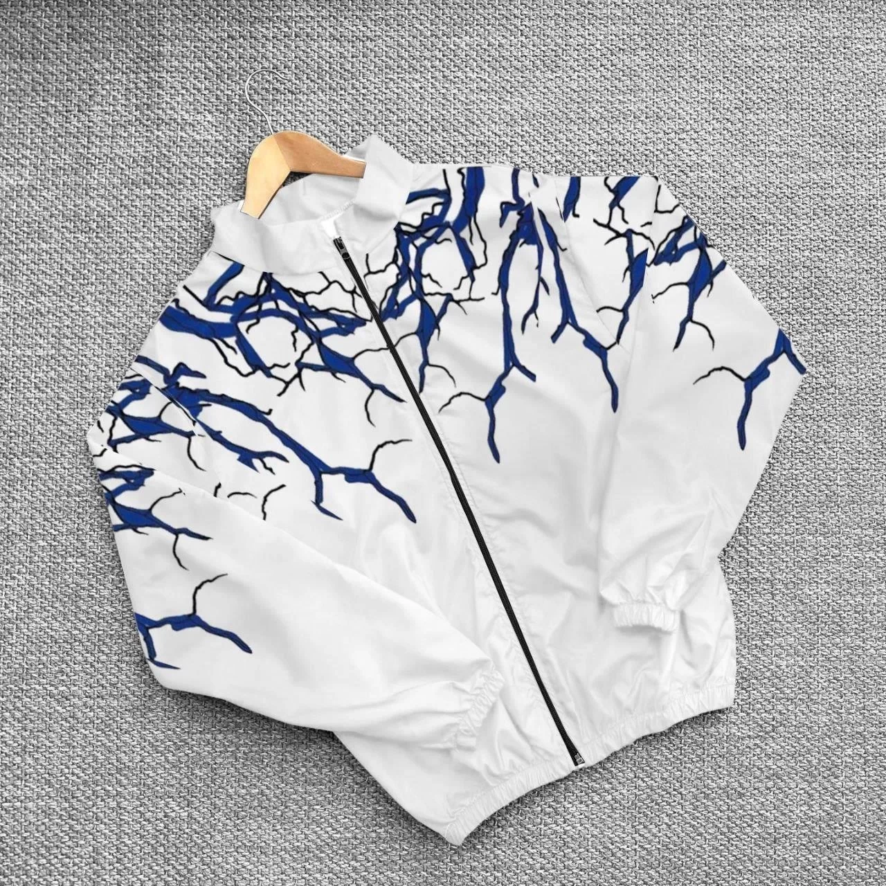 Erkek Paraşüt Kumaş Dijital Baskılı Rüzgarlık - Beyaz