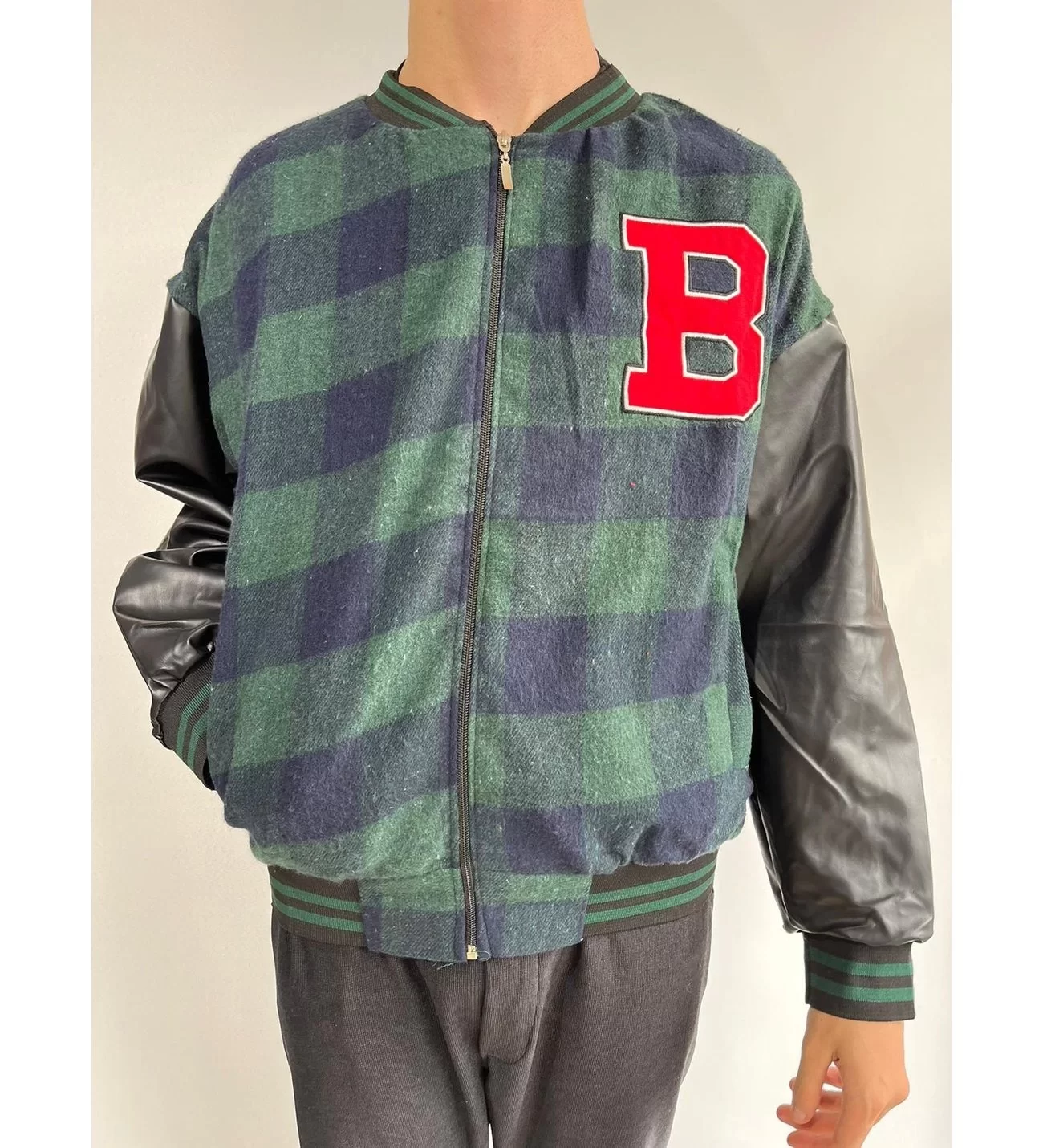 Erkek Pötikare Desen Nakışlı Kolej Ceket - Haki