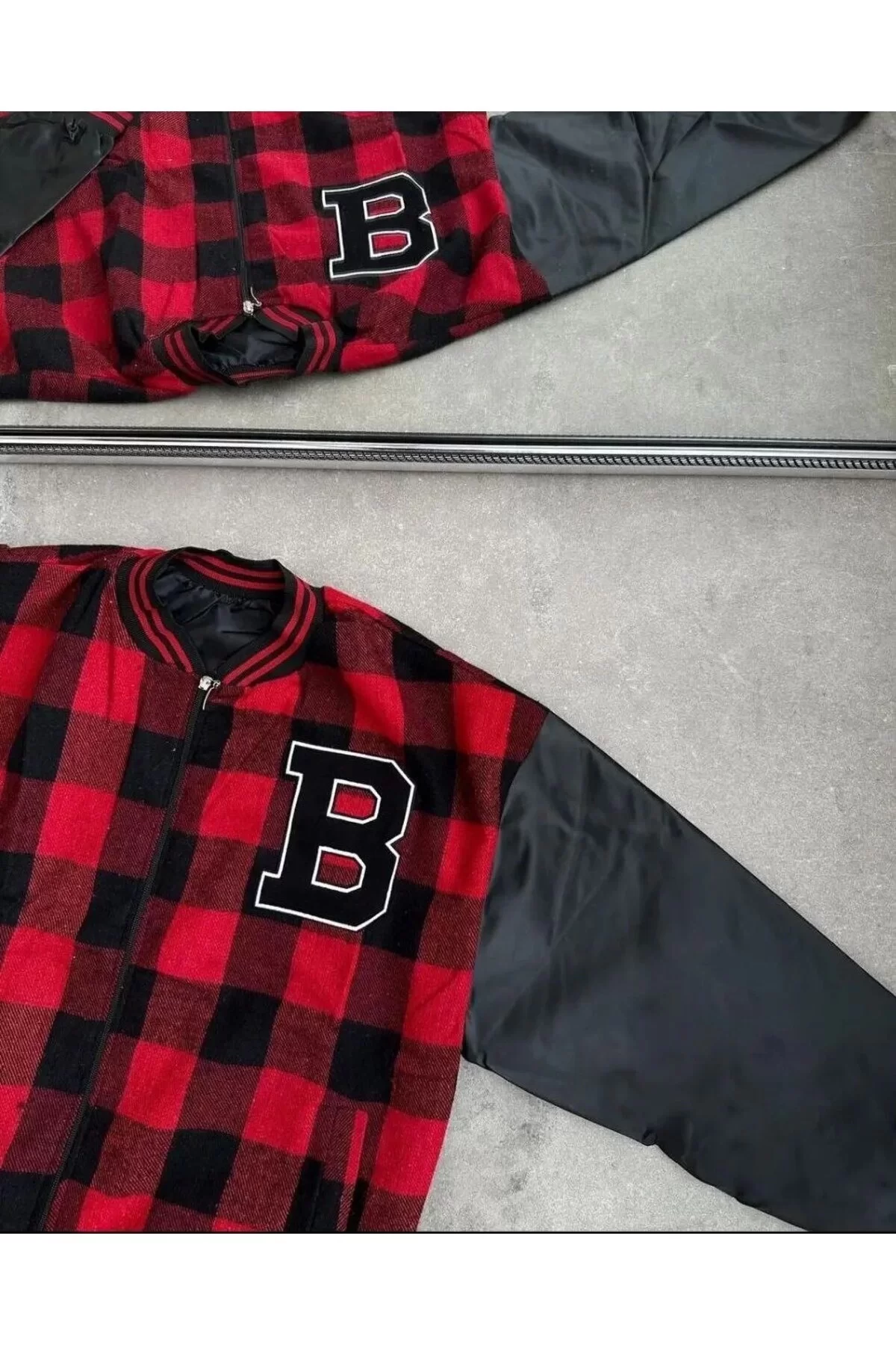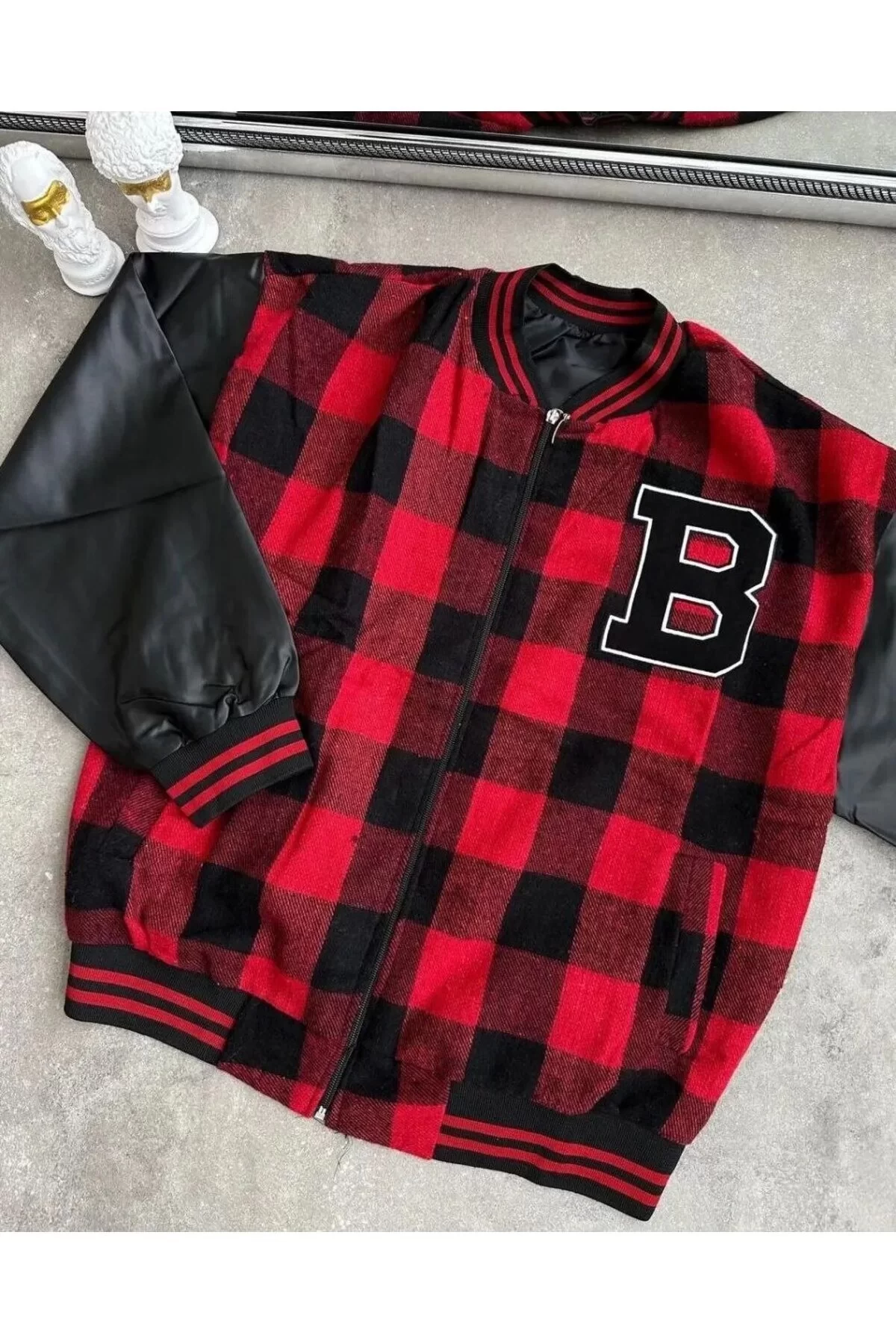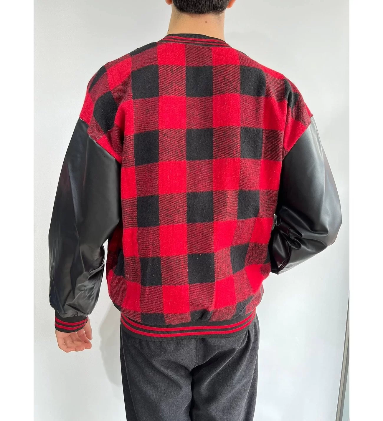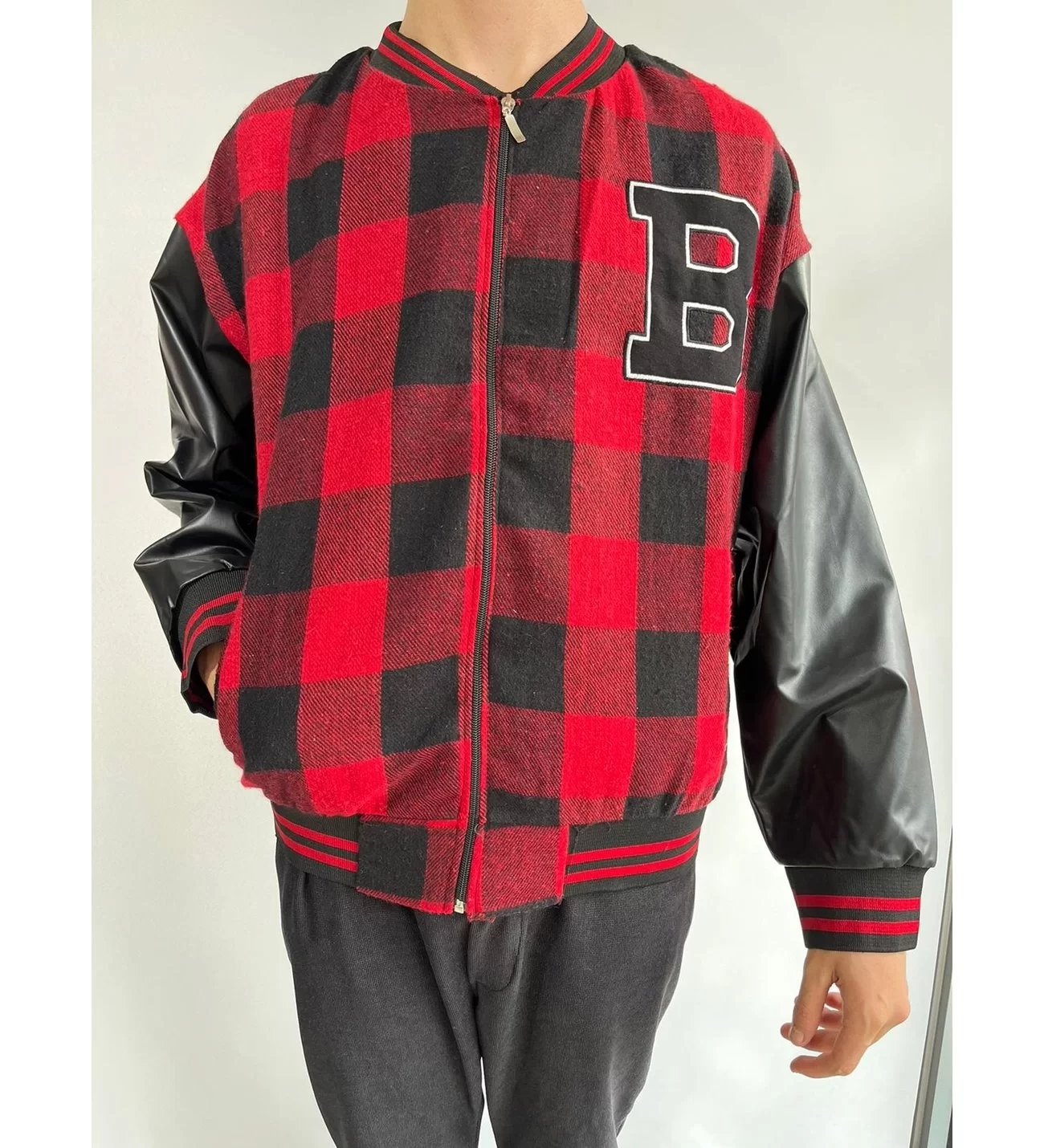 Erkek Pötikare Desen Nakışlı Kolej Ceket - Kırmızı