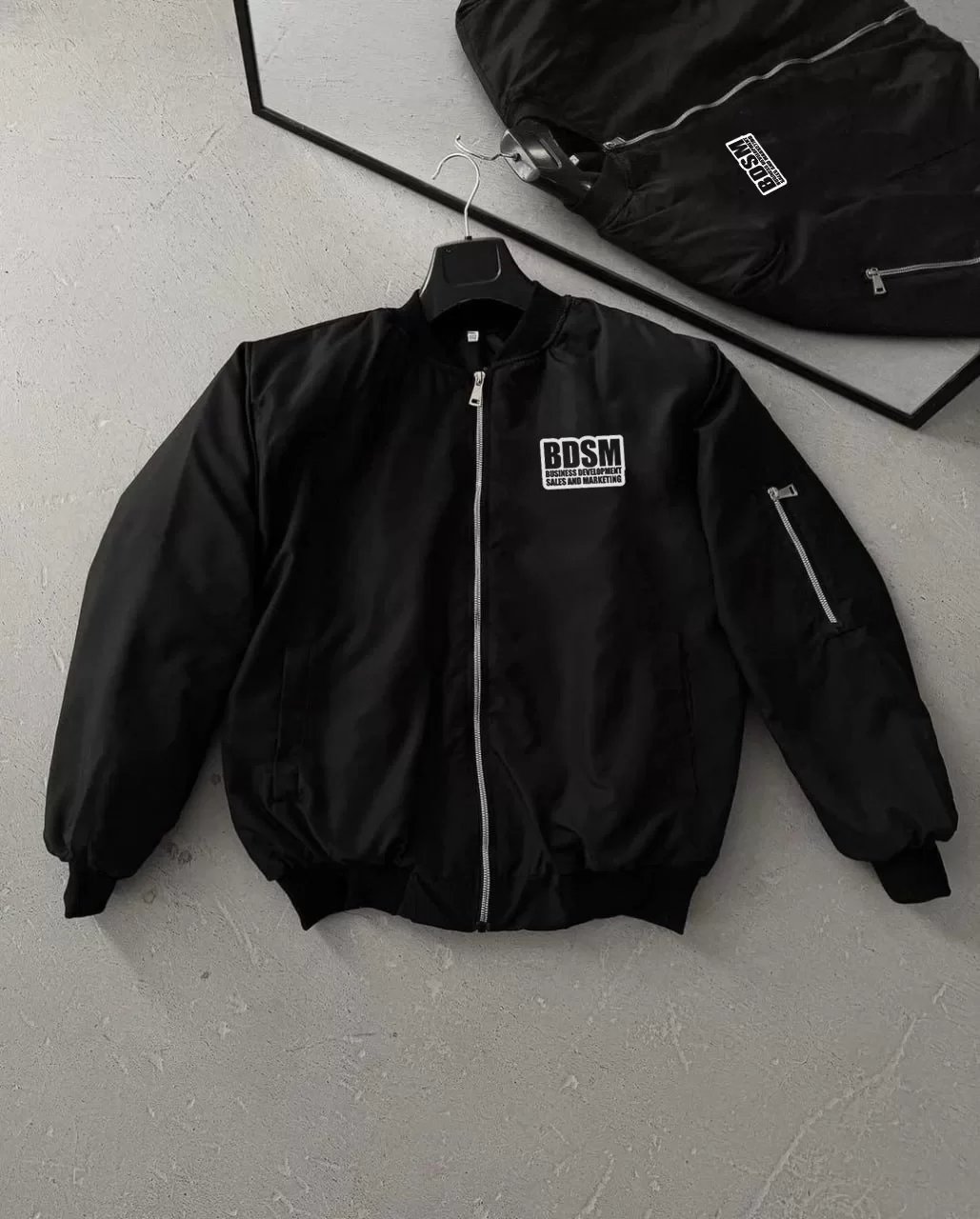 İçi Kapitone Astarlı Tam Kalıp Baskılı Bomber Ceket - Siyah