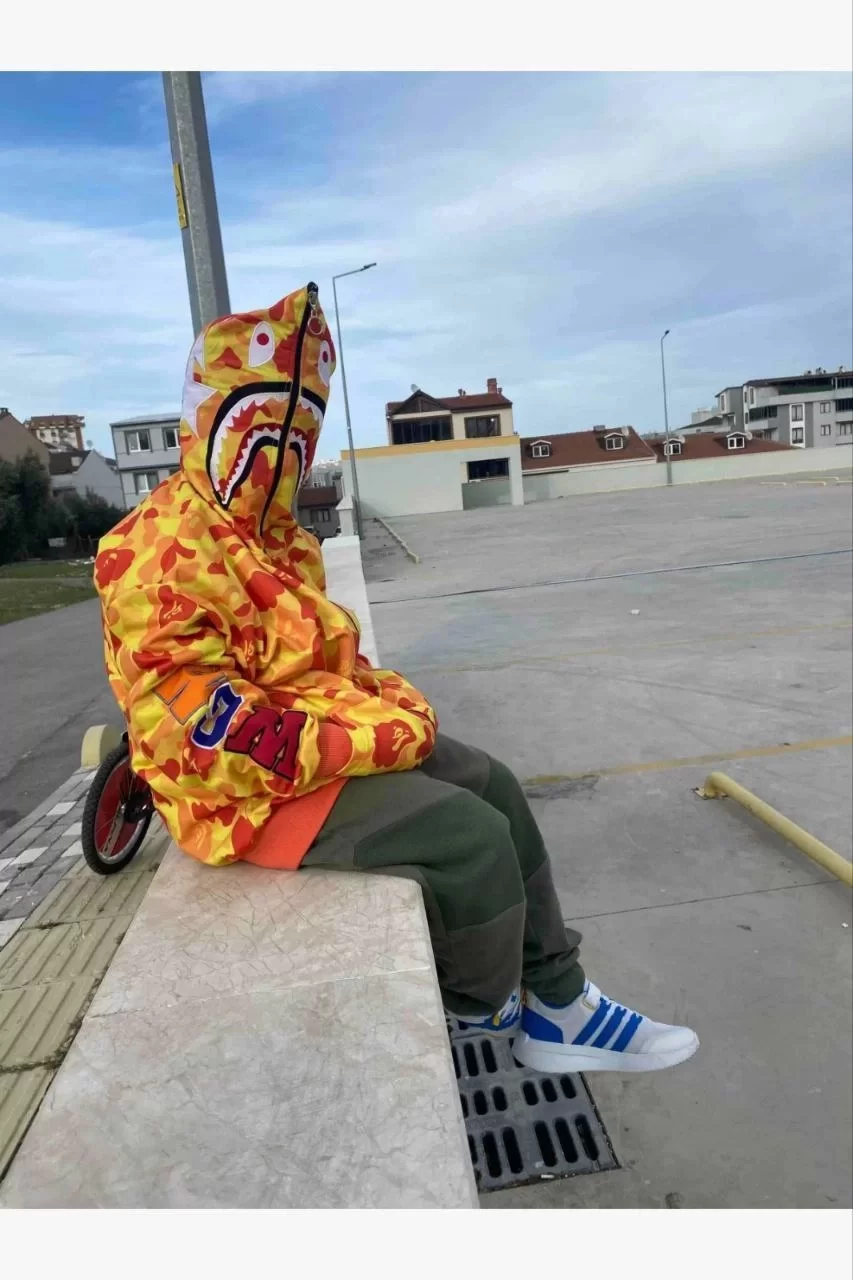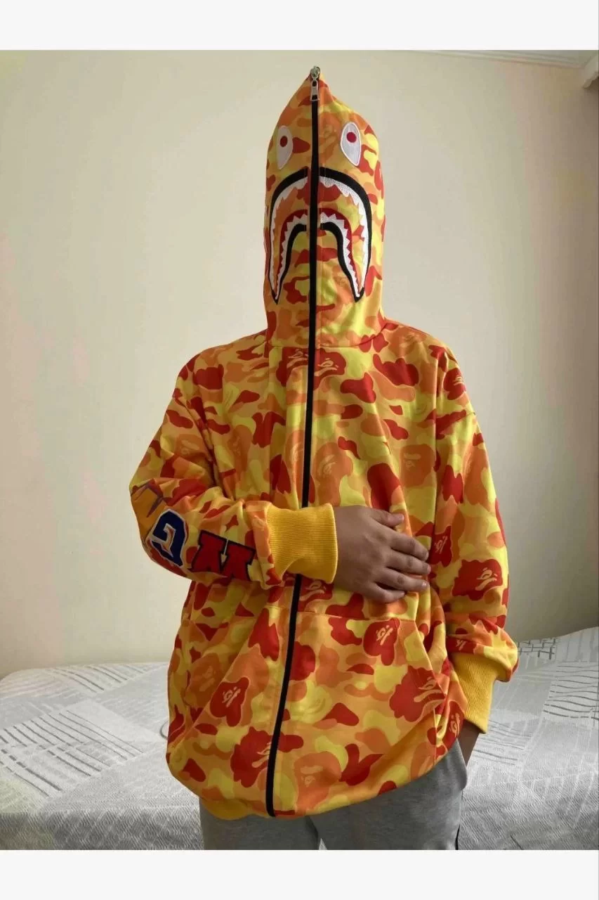 İki İplik Zıp Fermuarlı Nakışlı Kapüşonlu Hırka - Sarı