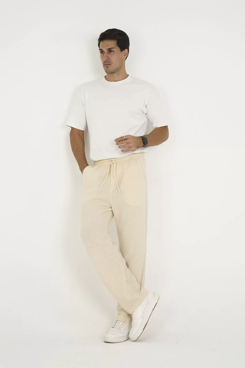 Jakar Kutu Desenli Baggy Eşofman Pantolon - Bej