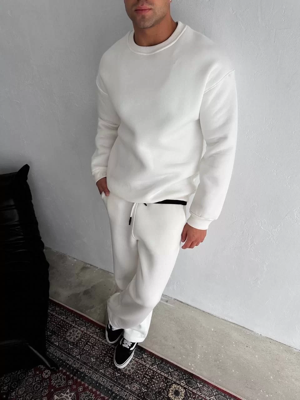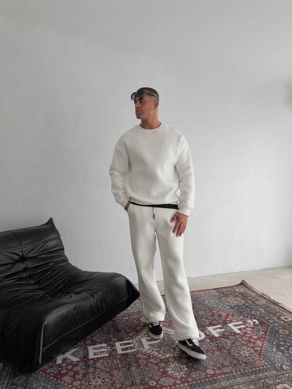 Kışlık Bisiklet Yaka Basic Eşofman Takım - Beyaz