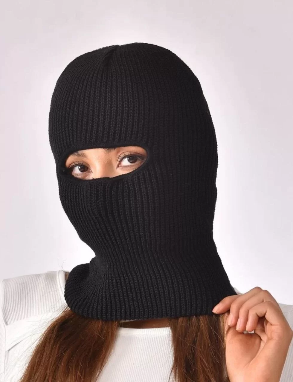 Kışlık Kar Maske Dokuma Triko Bere - Siyah