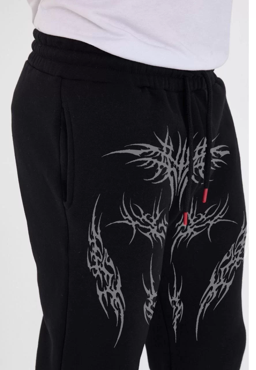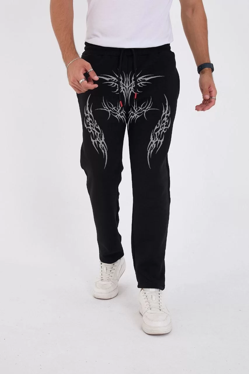 Kışlık Üç İplik Baskılı Eşofman Pantolon - Siyah