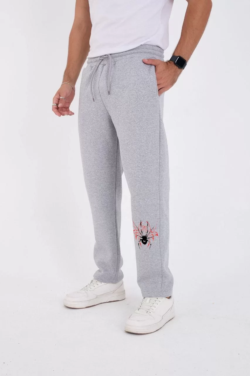 Oversize Üç İplik Baskılı Eşofman Pantolon - Gri