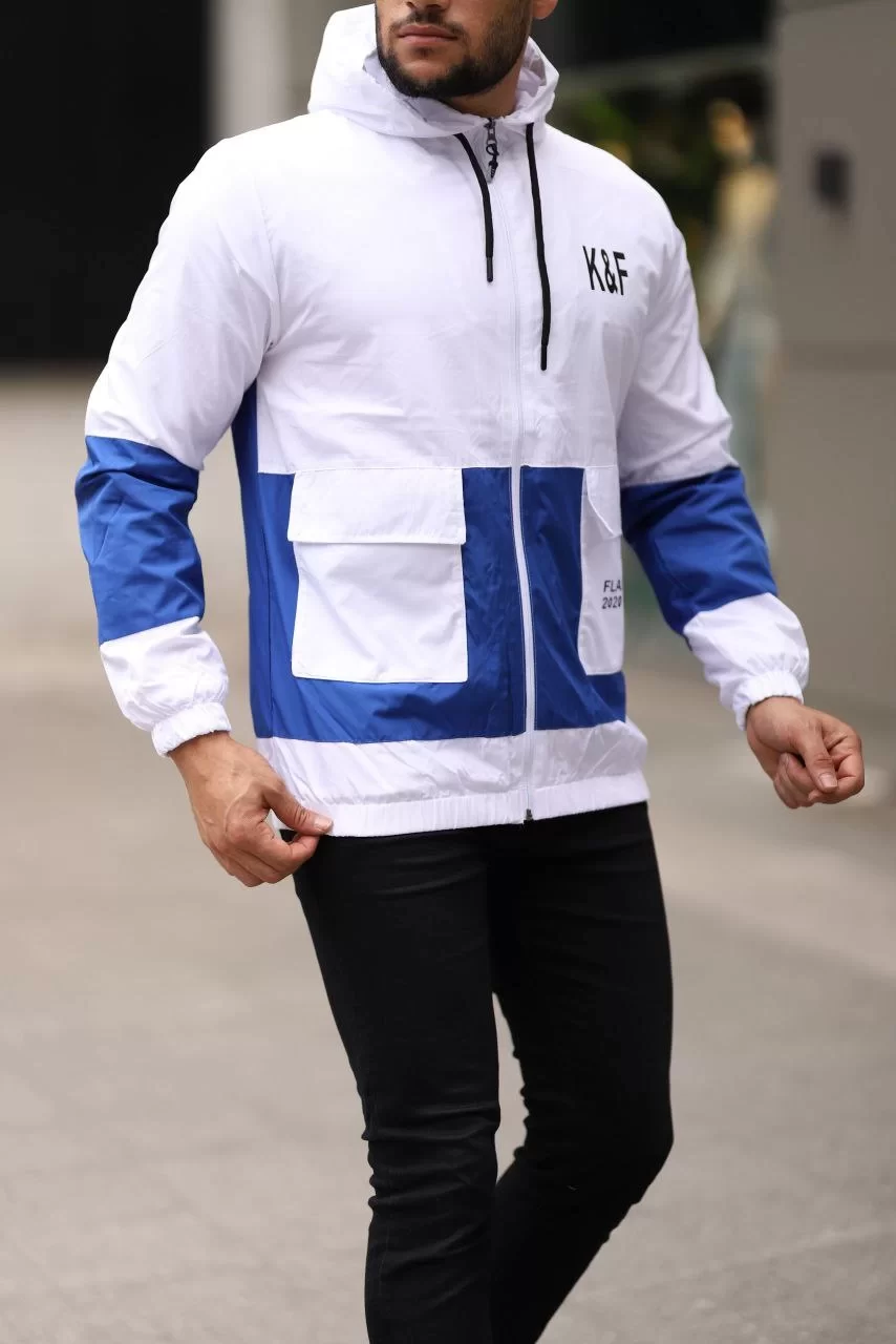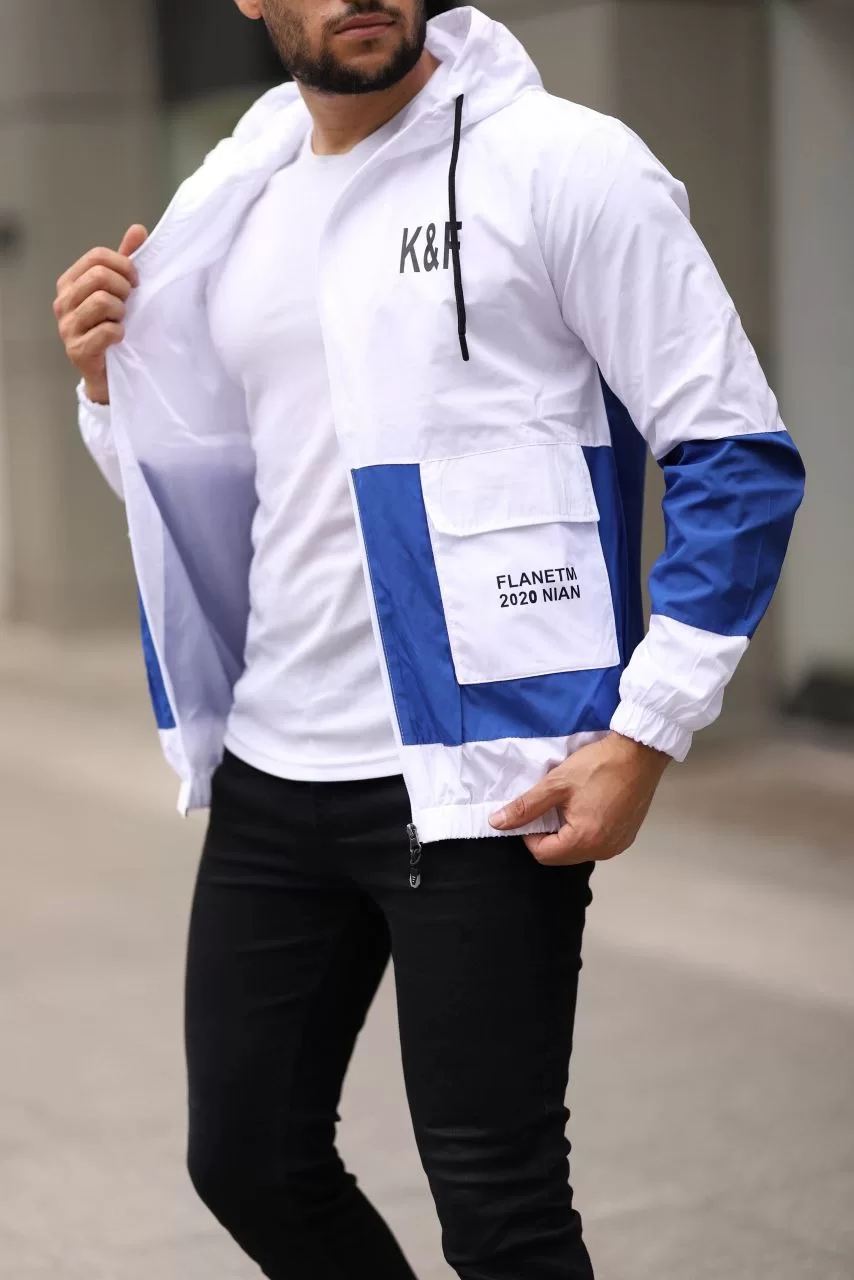 Tam Kalıp Kapşonlu İçi Astarlı Parçalı Yağmurluk - Mavi