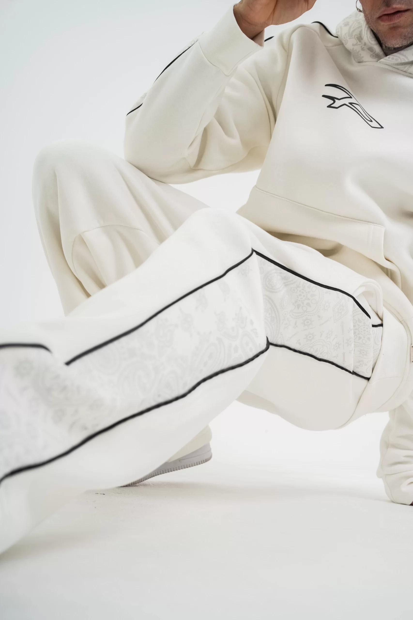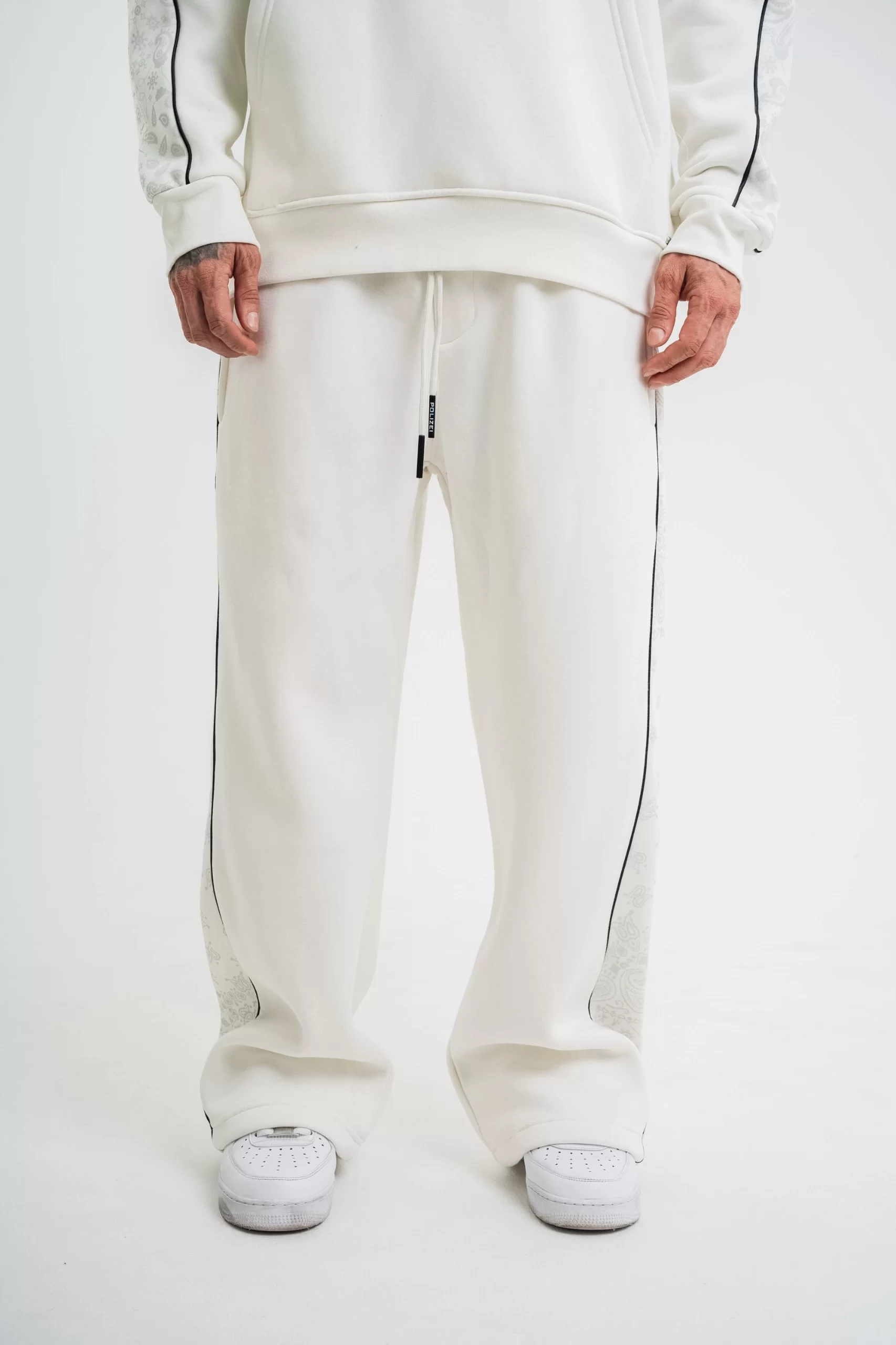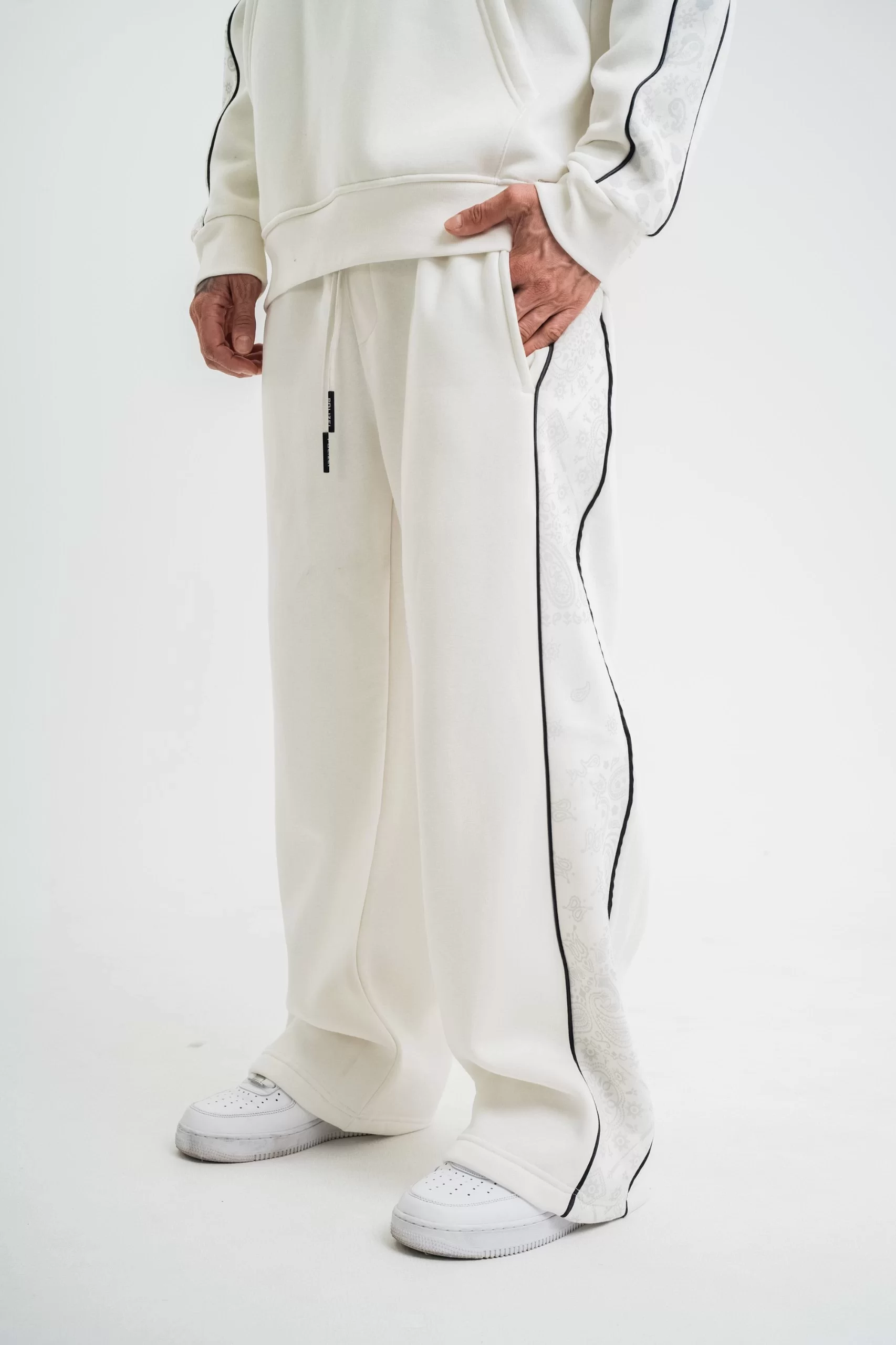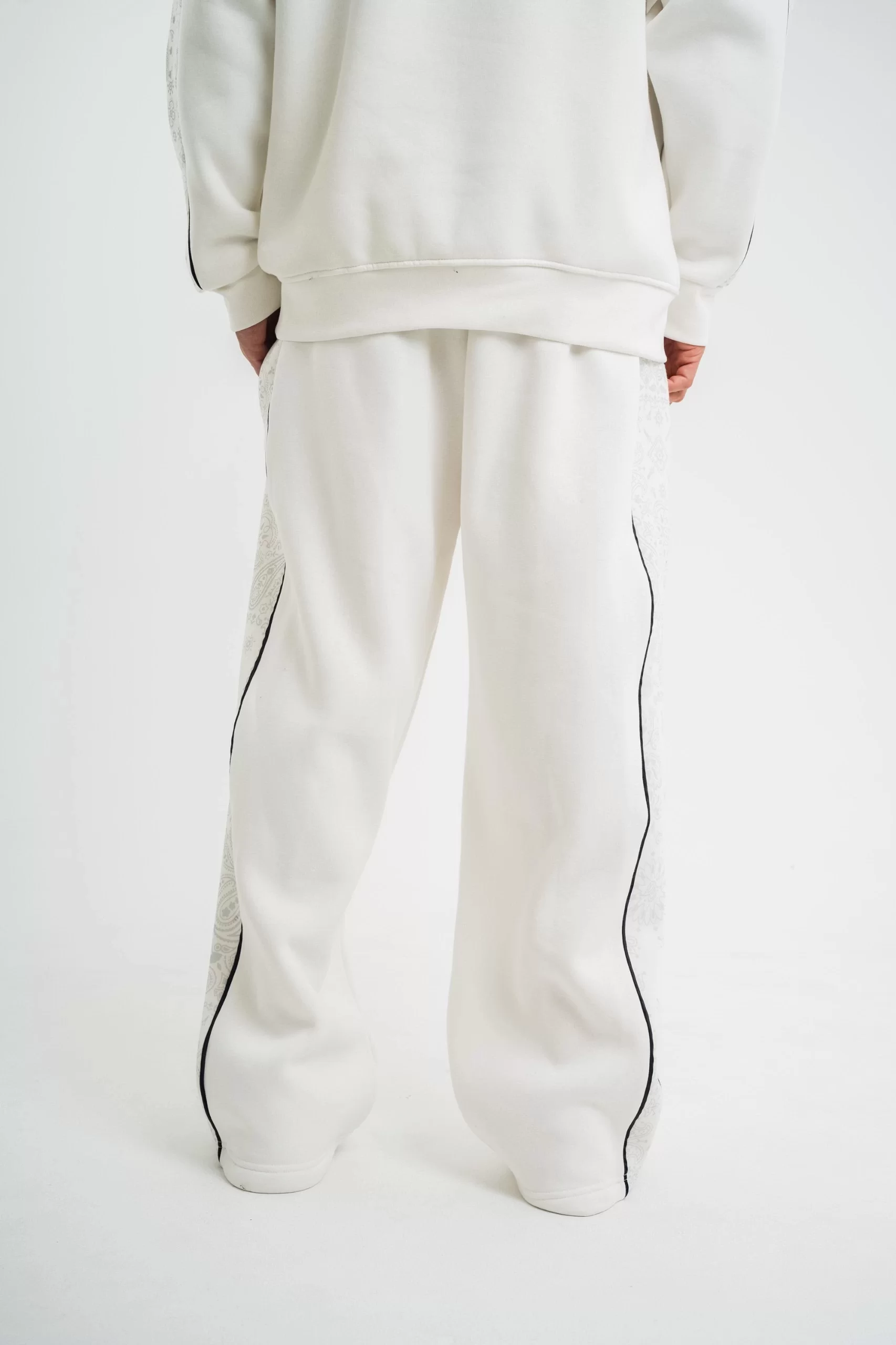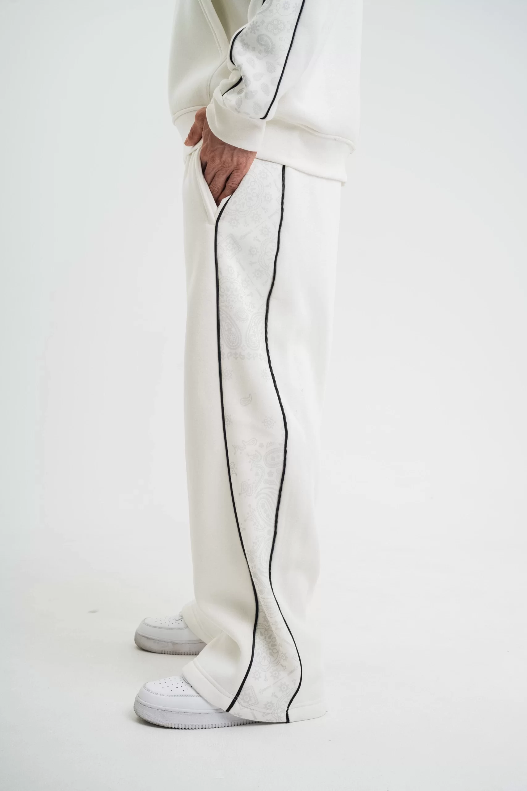 Üç İplik İçi Pamuklu Ara Biyeli Baskılı Baggy Eşofman Pantolon - Beyaz