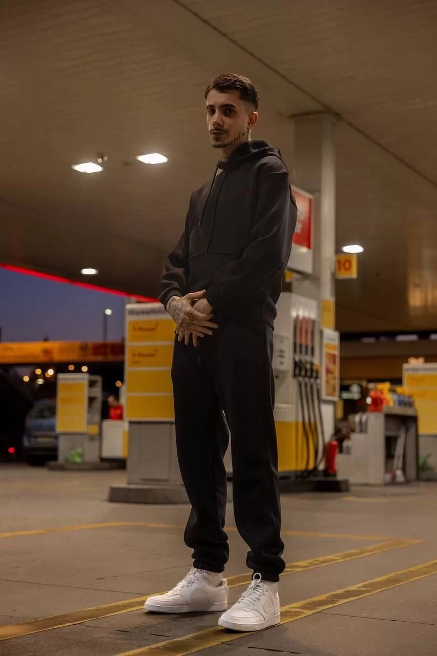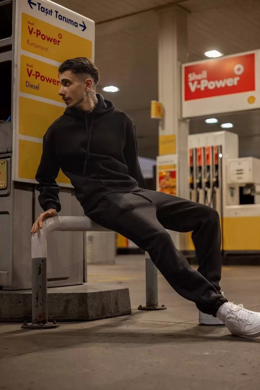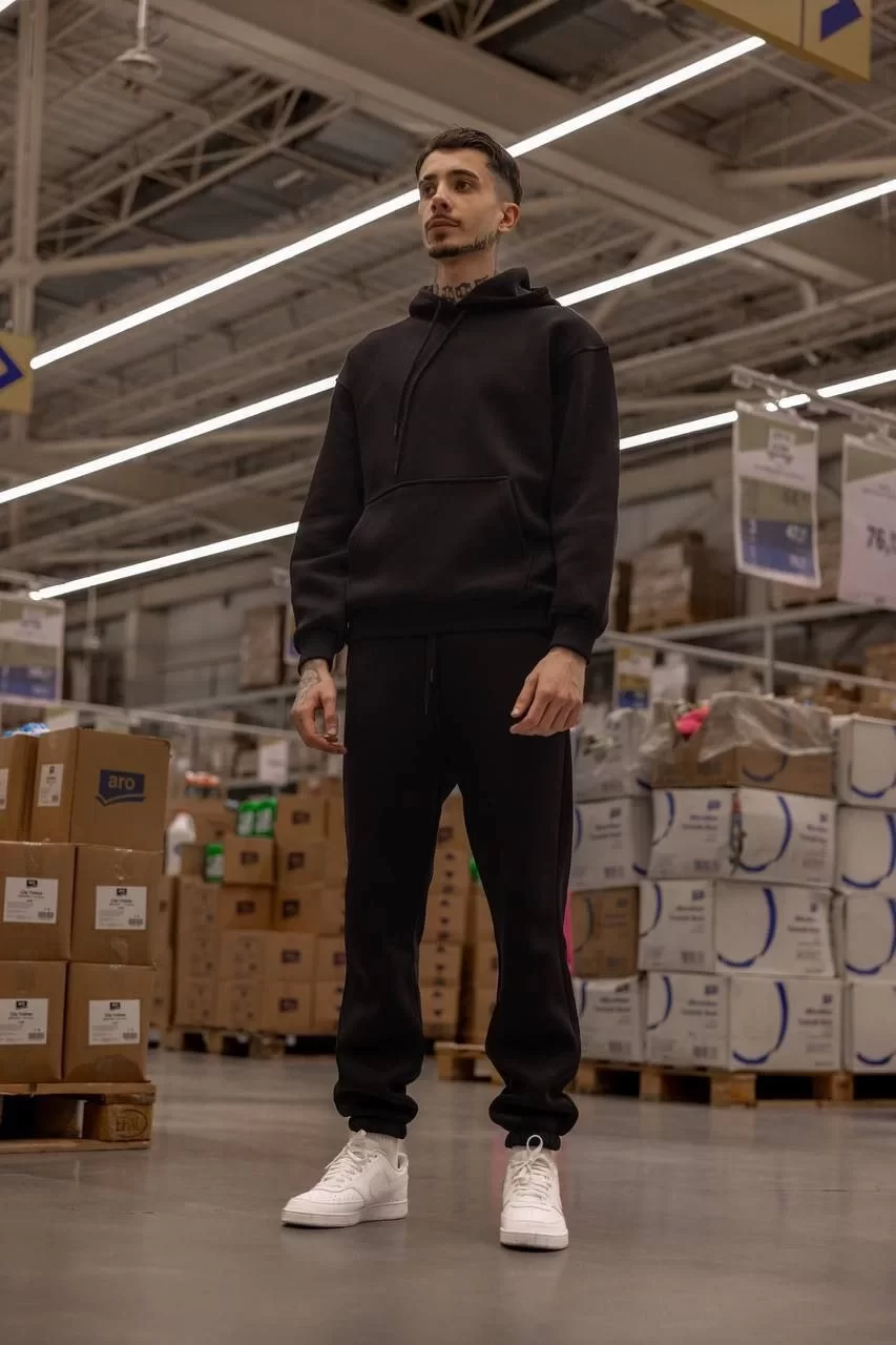 Üç İplik Kapüşonlu Eşofman Takım - Siyah