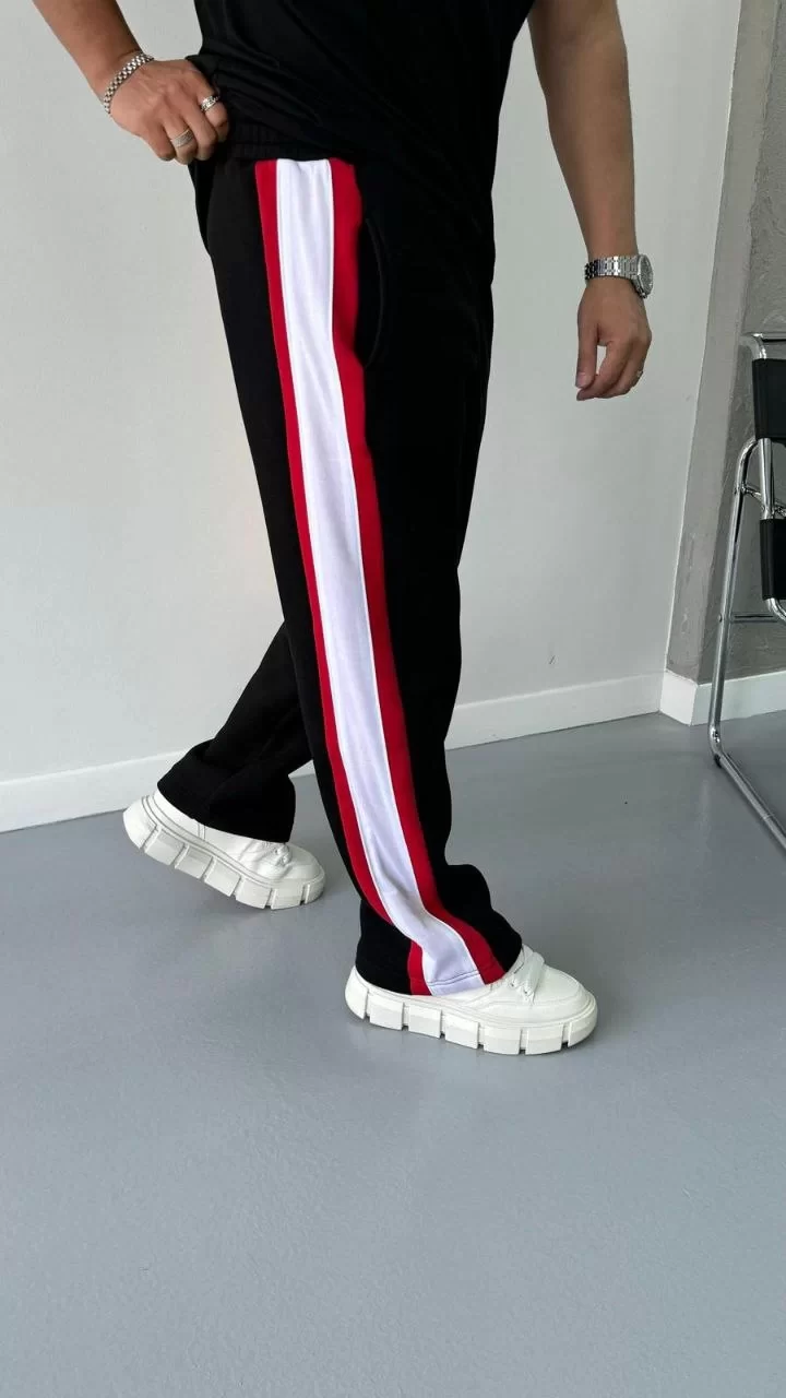 Üç İplik Şeritli Eşofman Pantolon - Siyah