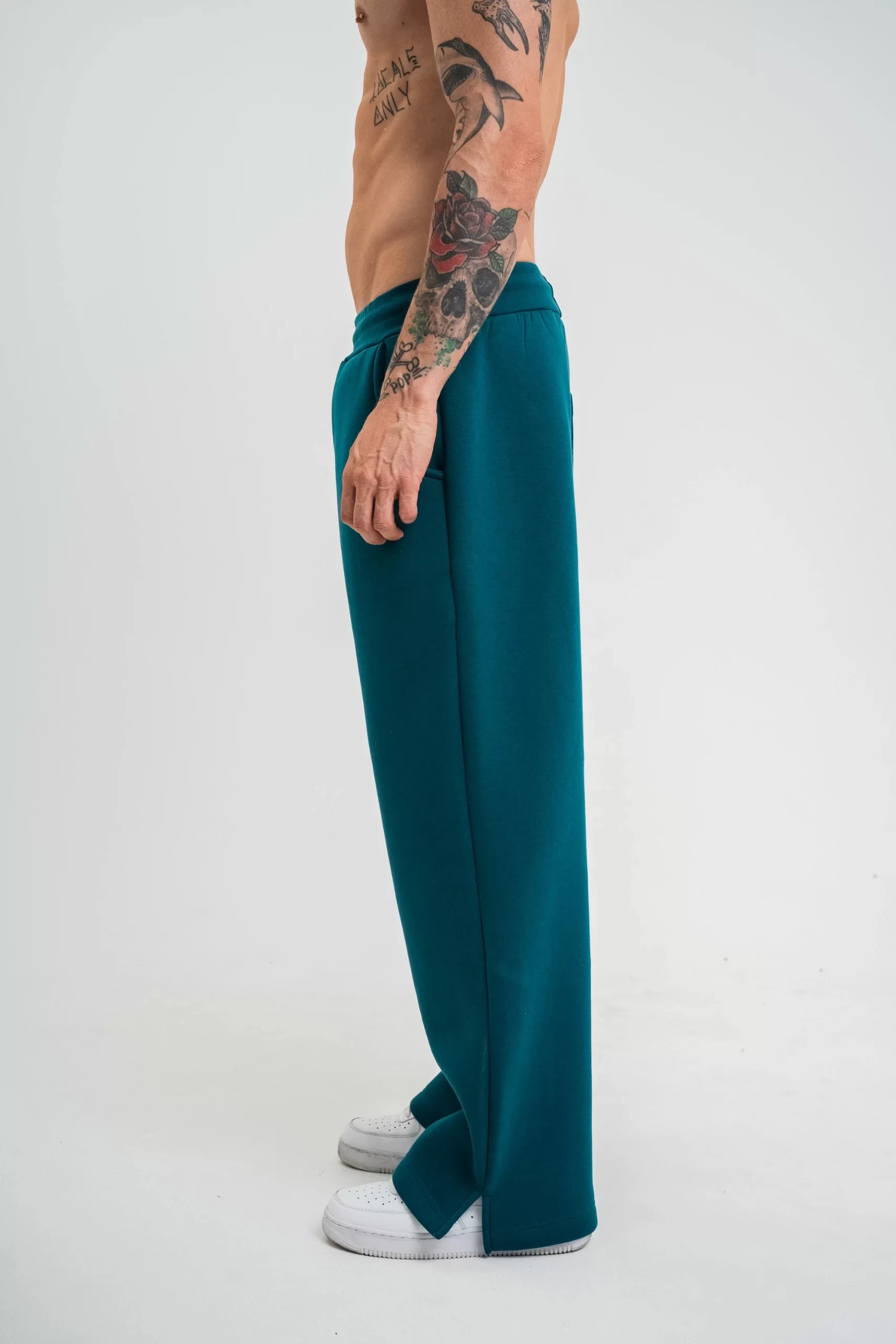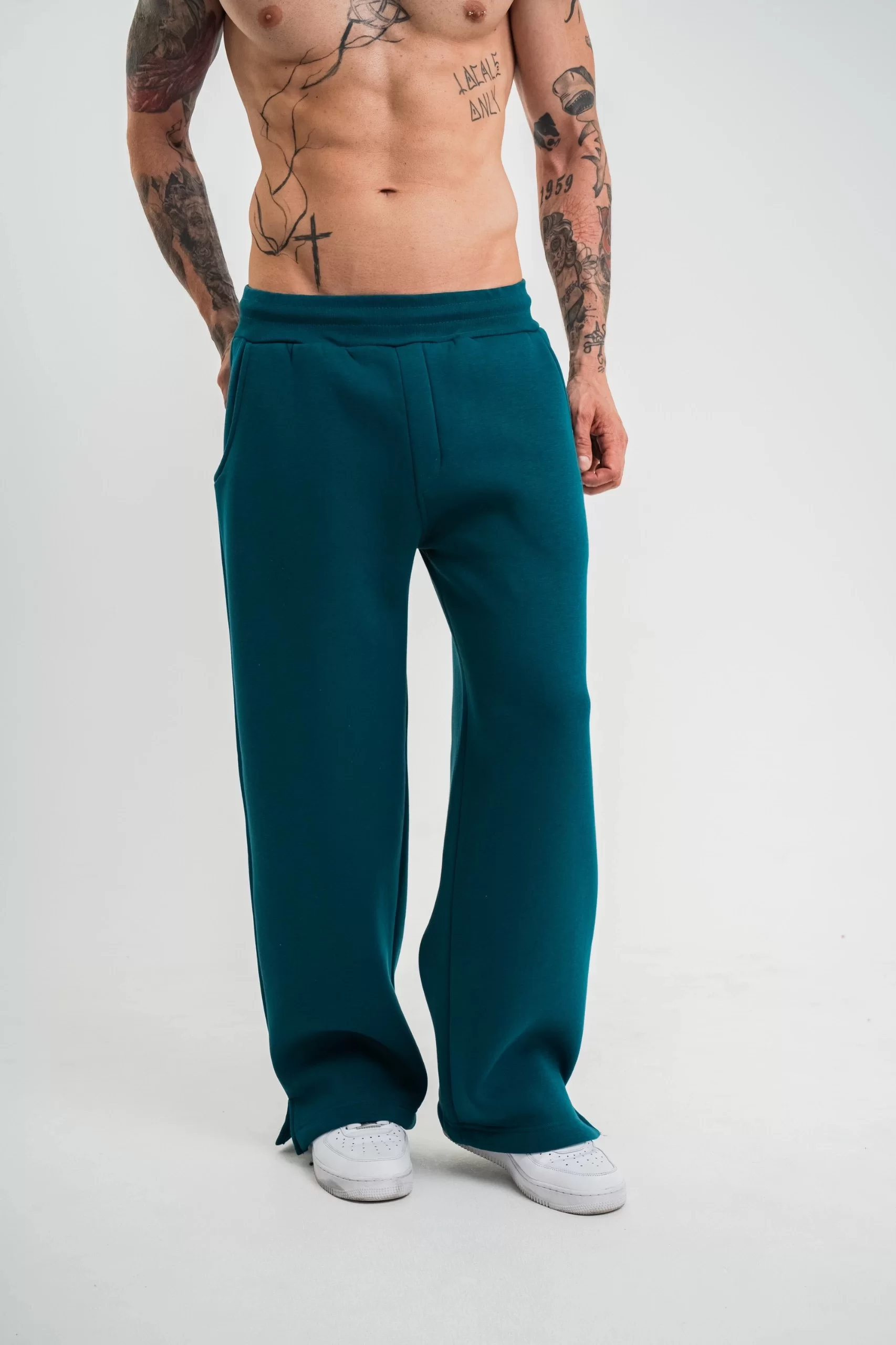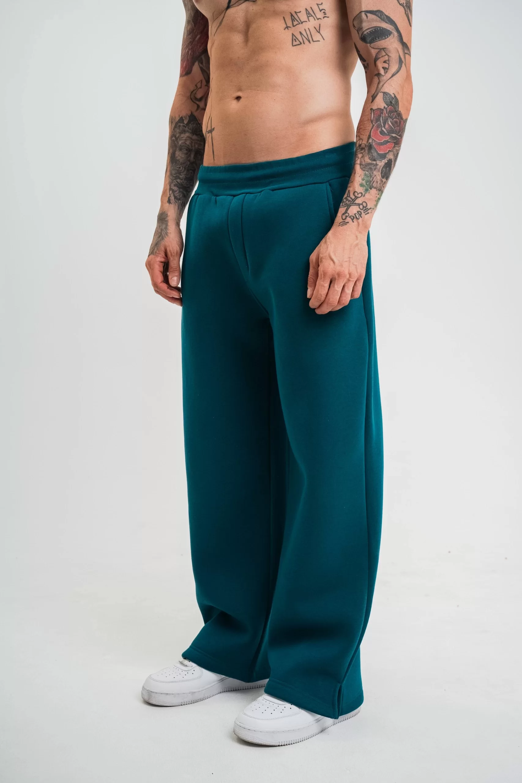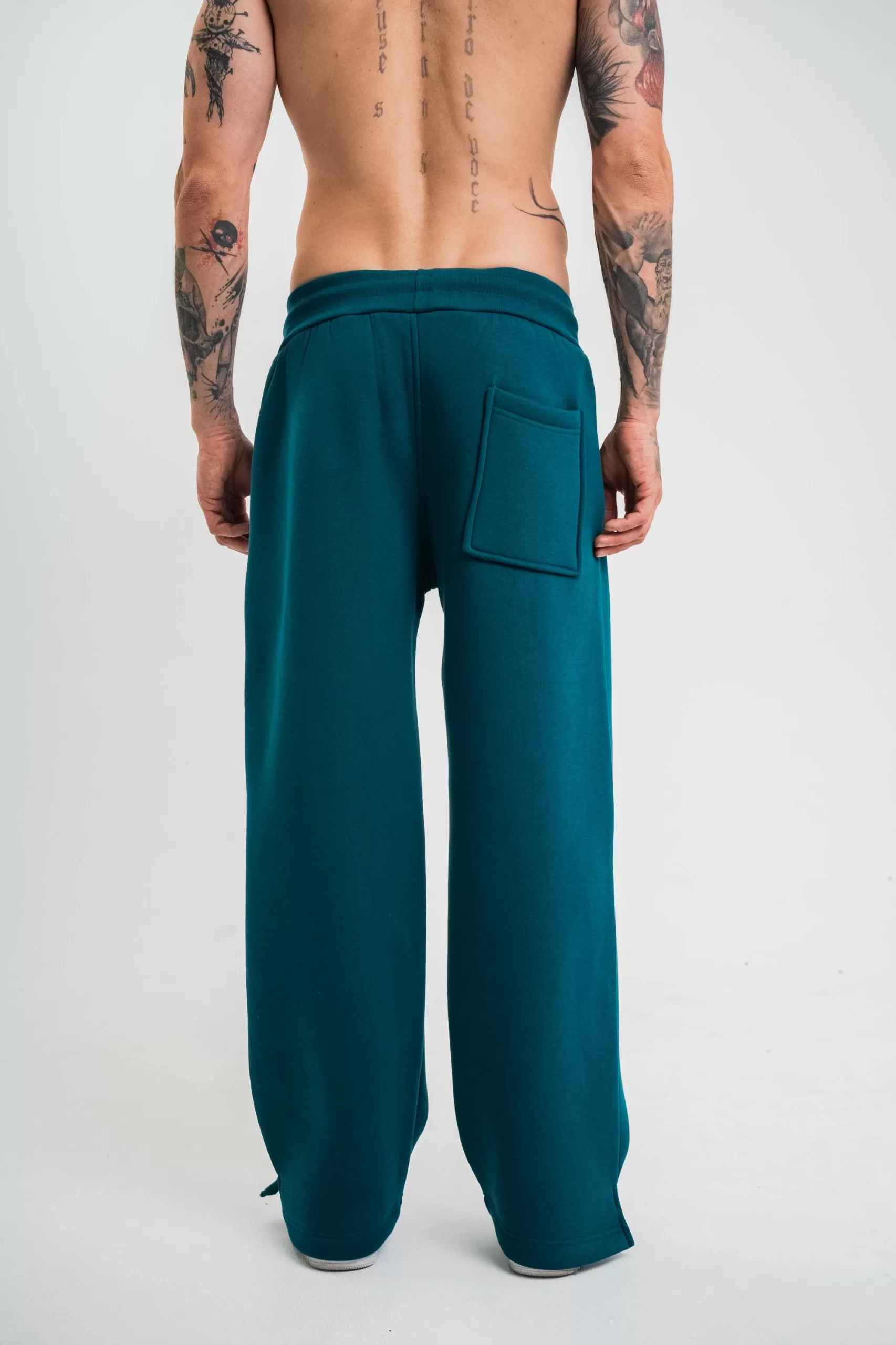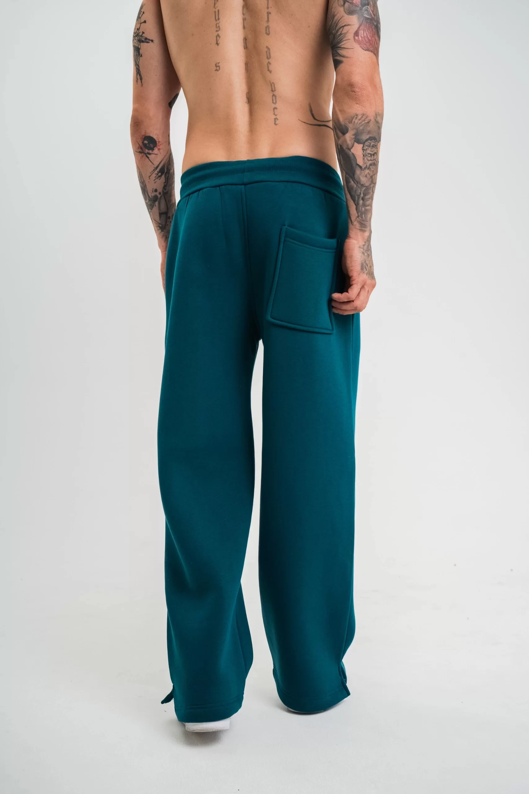Unisex Boru Paça Baggy Eşofman Pantolon - Koyu Deniz Yeşili