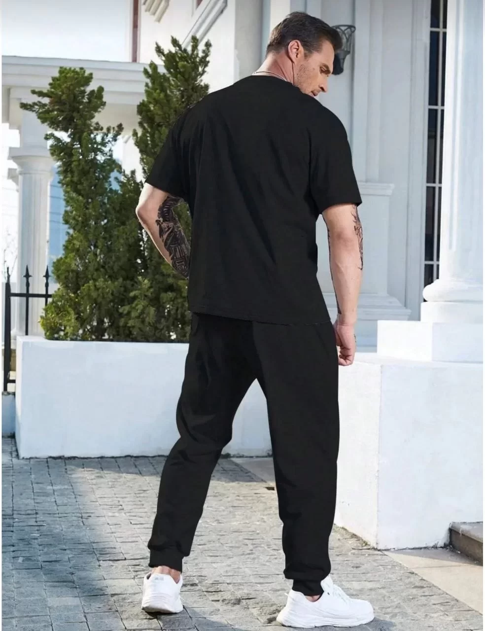 Unisex Düz T-Shirt ve Eşofman Takımı - Siyah