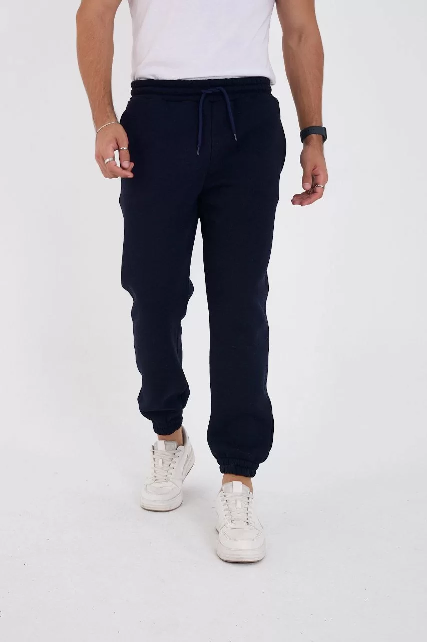 Unisex Kışlık Üç İplik Lastikli Eşofman Pantolon - Lacivert