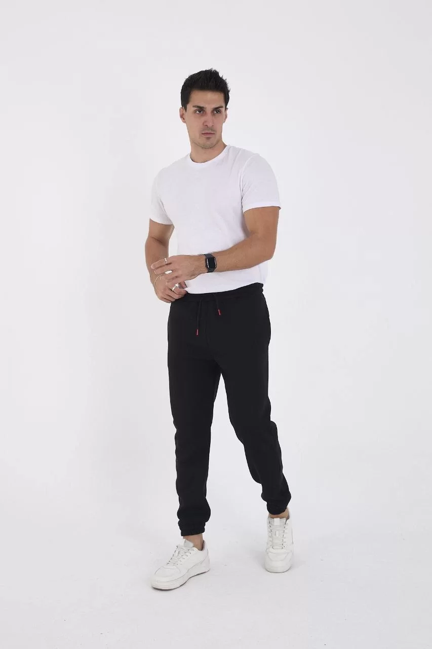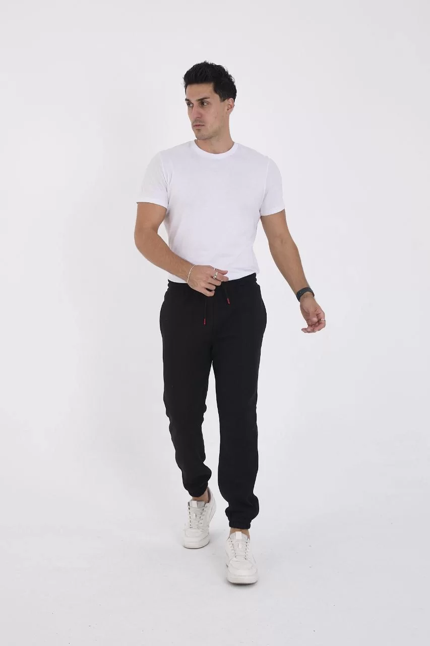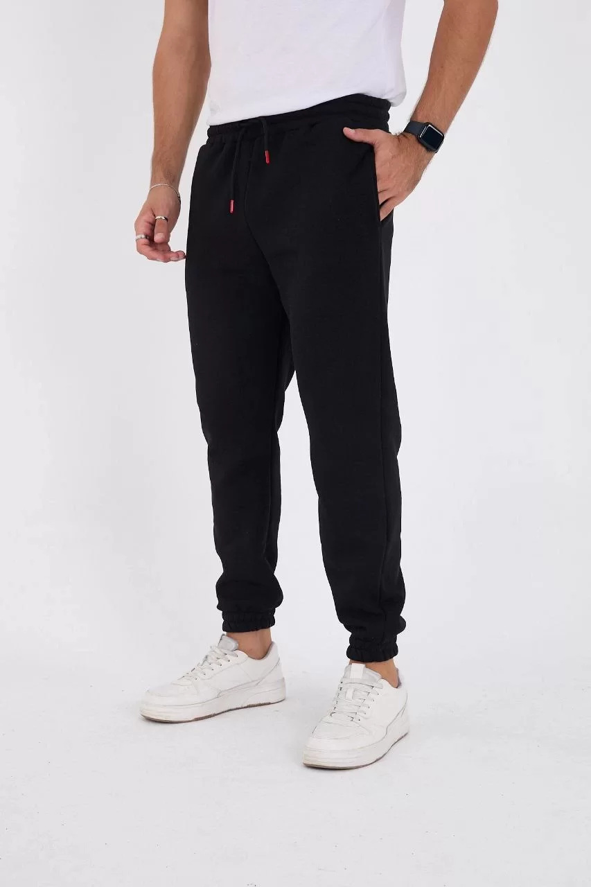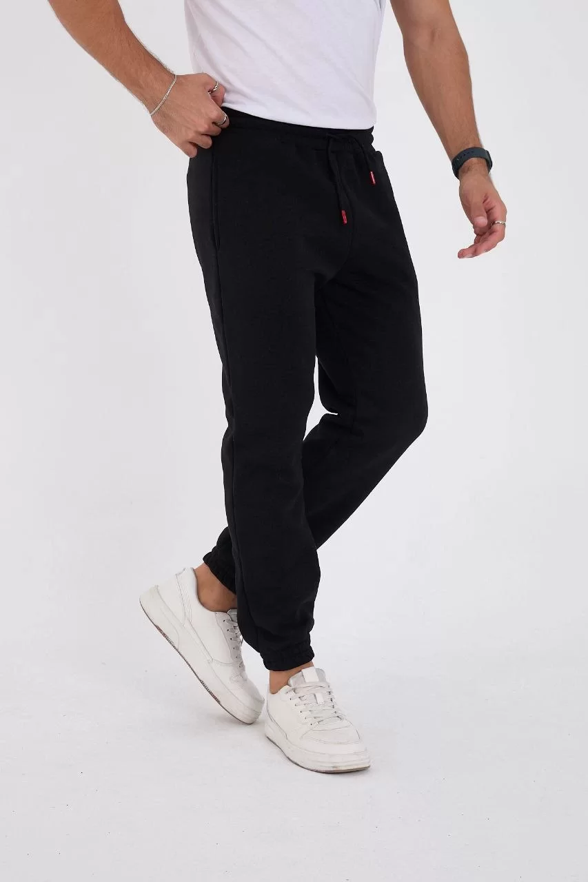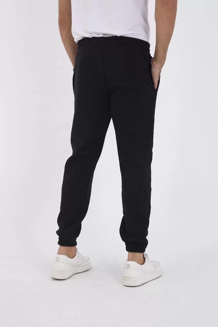 Unisex Kışlık Üç İplik Lastikli Eşofman Pantolon - Siyah