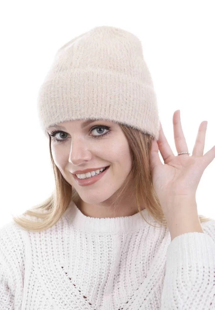 Unisex Tam Kalıp İnce Sakallı Triko Bere - Pudra