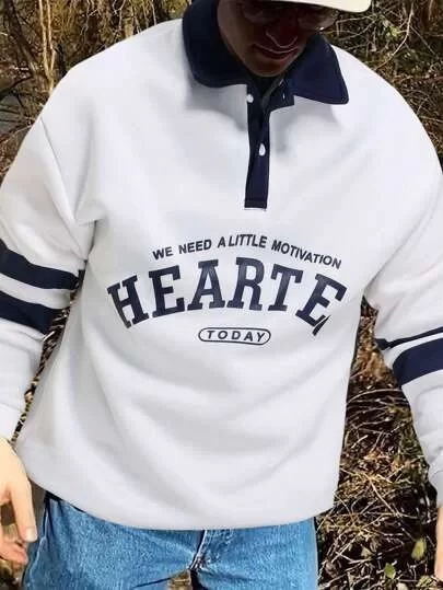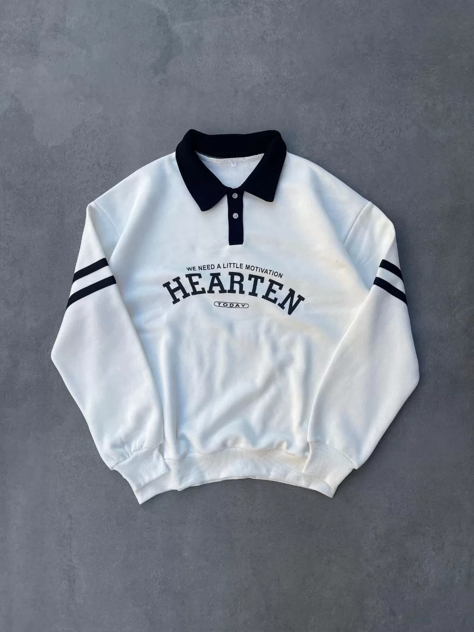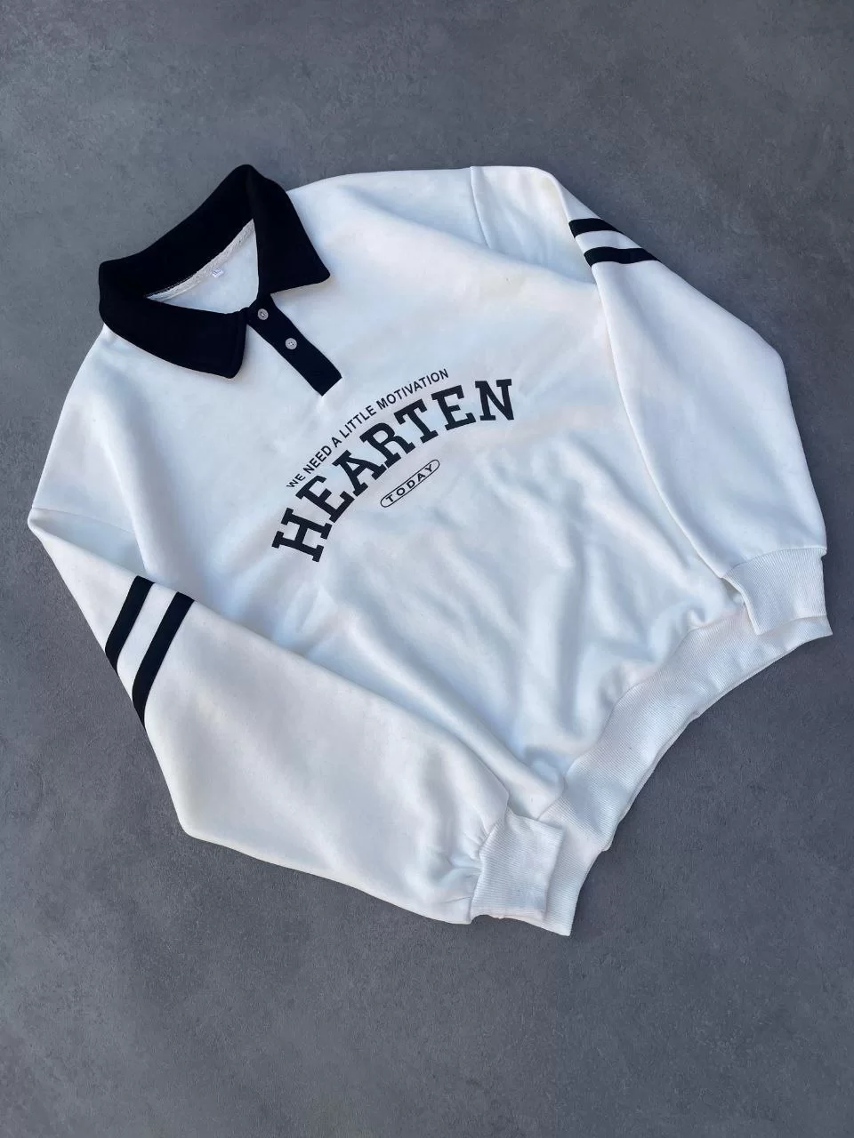 Unisex Üç İplik Yakalı SweatShirt - Beyaz