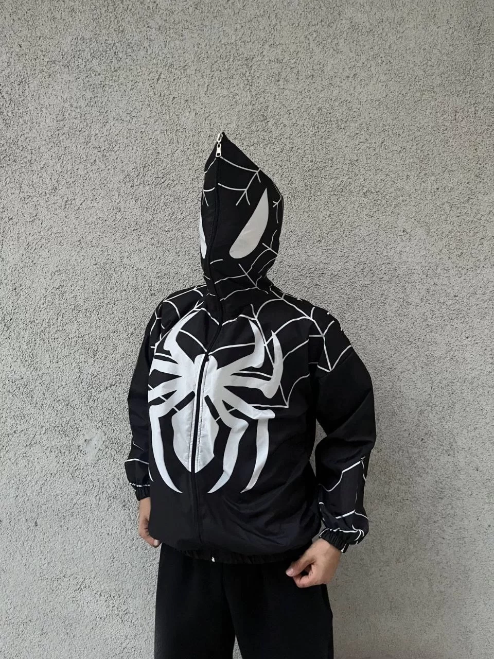 Unisex Uzun Kollu Kapşonlu Rüzgarlik - Siyah
